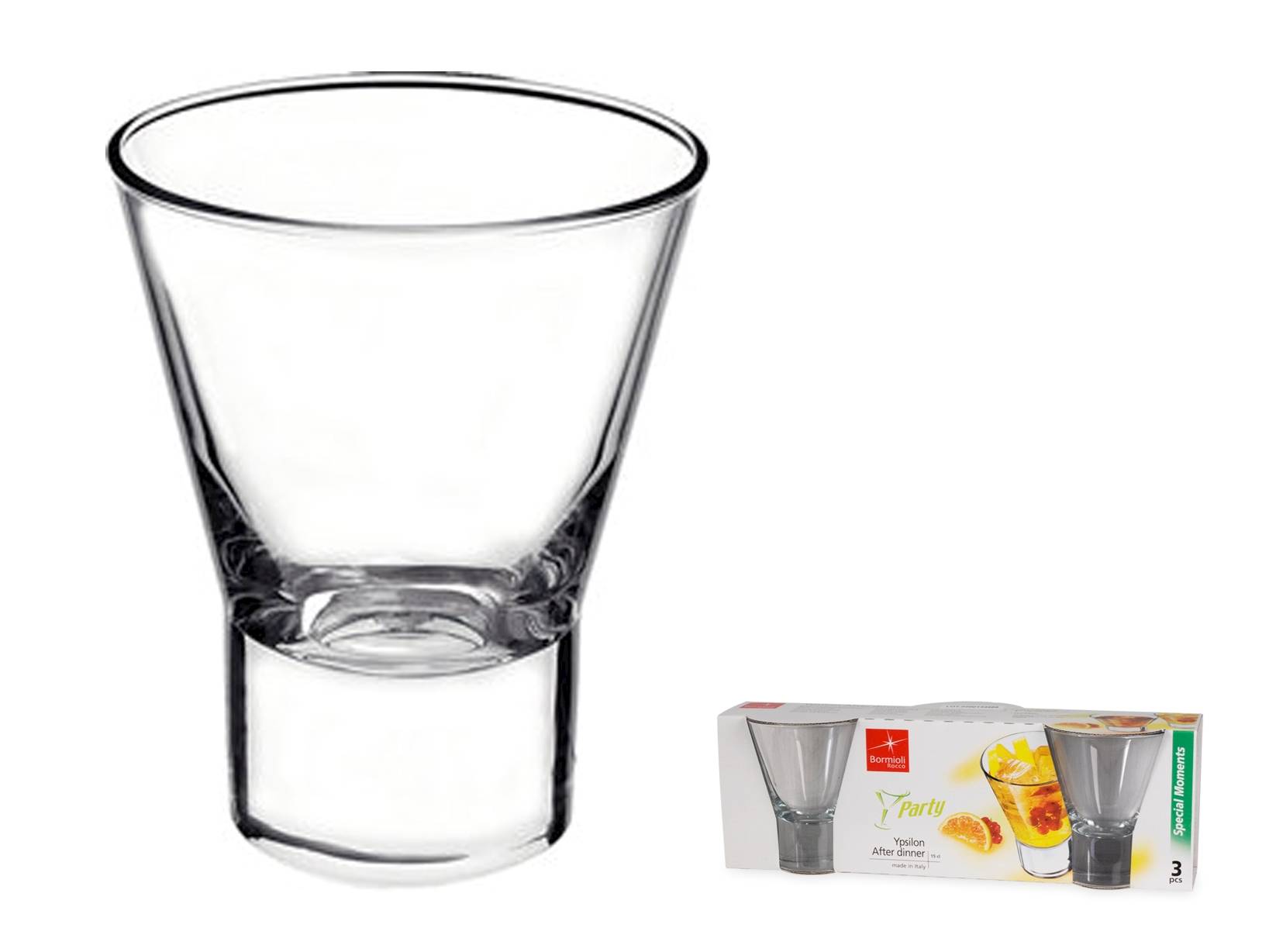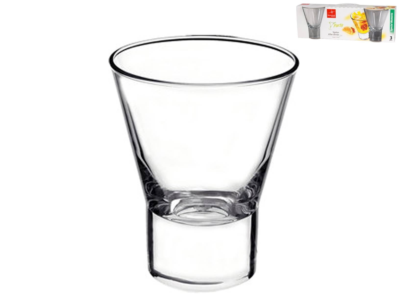 Il set di 3 bicchieri Ypsilon After Dinner rappresenta il perfetto equilibrio tra eleganza e praticità. Ideale per completare un pasto con stile, il design geometrico e leggero esalta la semplicità e la raffinatezza di ogni servizio. Un'aggiunta perfetta a qualsiasi tavola, pensata per stupire con discrezione. LINEA YPSILON,YPSILON,Bormioli Rocco