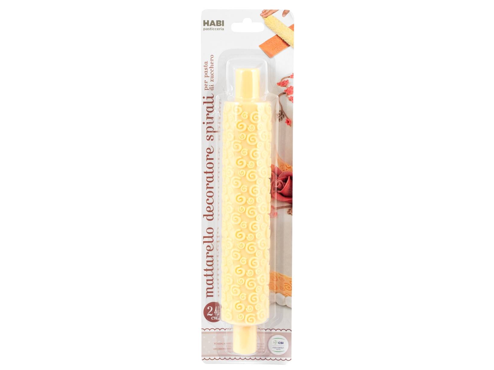 Mattarello in polipropilene pastello decoro spirali linea pasticceria cm 24.