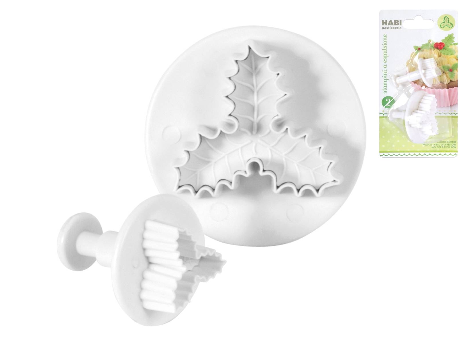 Confezione di 2 stampini in plastica abs con espulsione e decoro agrifoglio.