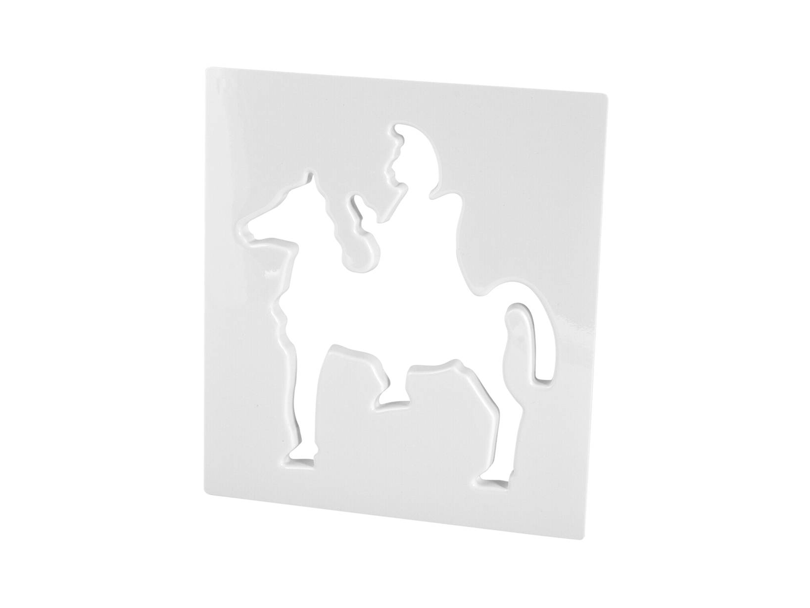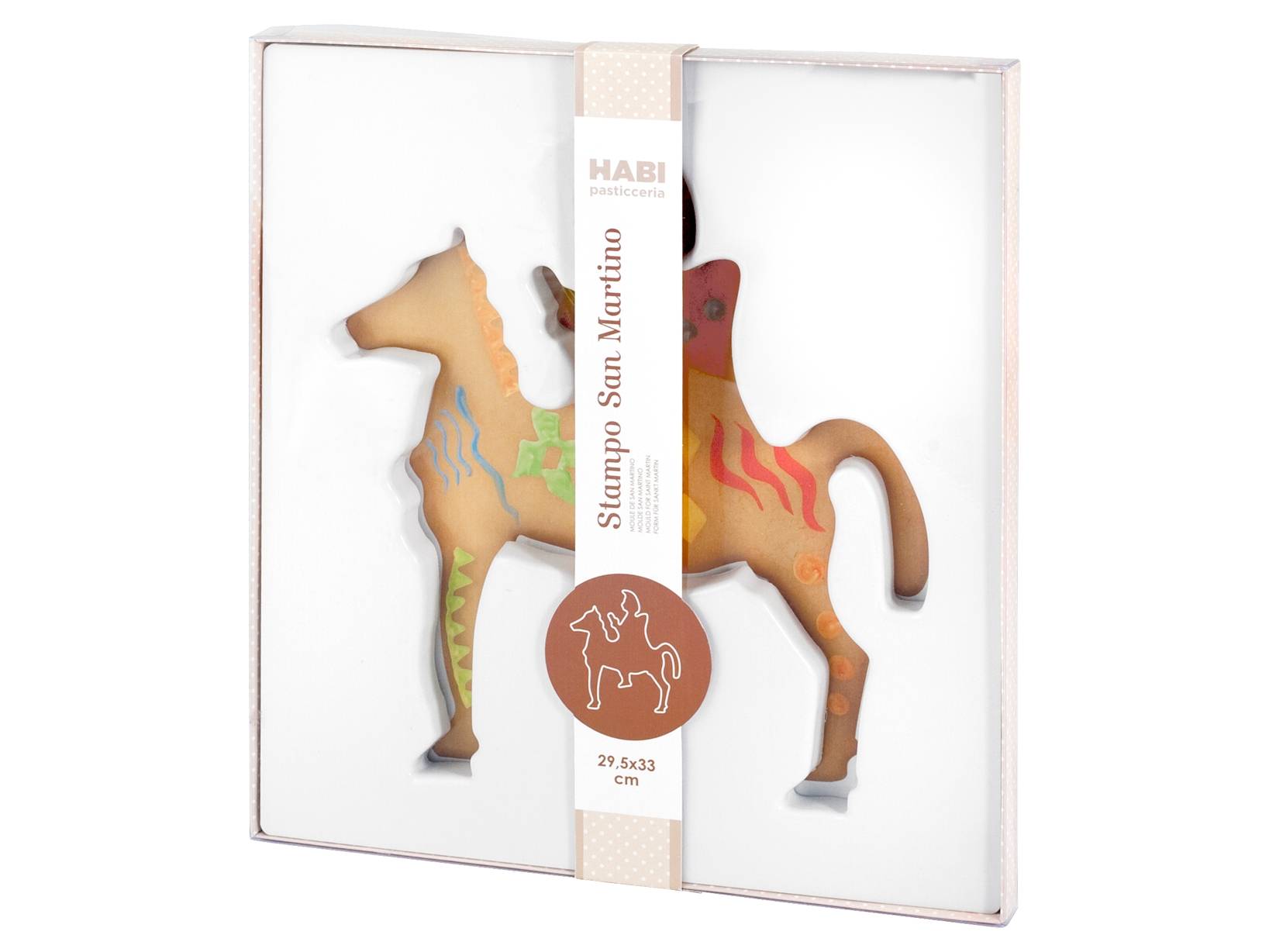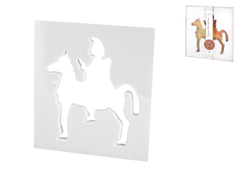 Stampo san martino in abs. Dimensione esterna: 29,5x33 cm. Lo stampo san martino è uno strumento per creare un dolce tipico veneziano, che si prepara in occasione della festa di san martino il 11 novembre. Si tratta di un biscotto di pasta frolla a forma di san martino a cavallo, decorato con cioccolato, glassa e confetti. Lo stampo serve per tagliare la pasta frolla con precisione e ottenere la sagoma del santo ed è è un modo divertente e originale per realizzare dolci con i bambini e riscoprire la tradizione veneziana. LINEA HABI PASTICCERIA,HABI PASTICCERIA