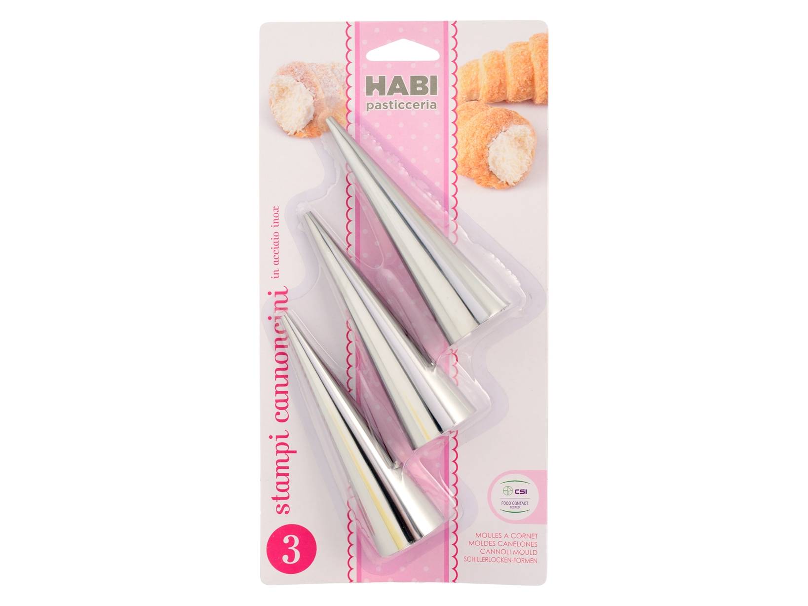 Set 3 cannoli inox conici linea pasticceria.