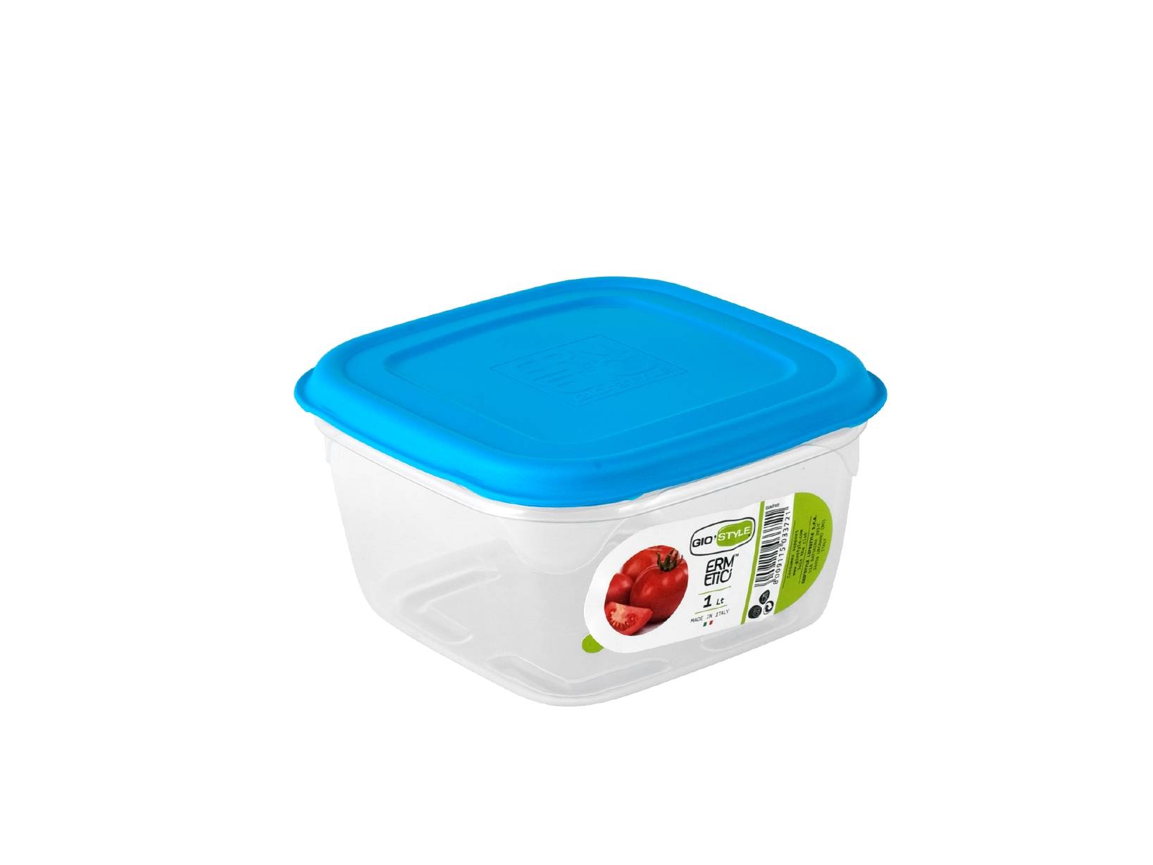 Questo contenitore ermetico quadrato da 1 litro è ideale per conservare cibi secchi o preparazioni casalinghe. Realizzato in polipropilene con tappo azzurro, la forma quadrata ottimizza lo spazio e la chiusura ermetica mantiene il contenuto fresco e protetto. LINEA ERMETICI STYLE