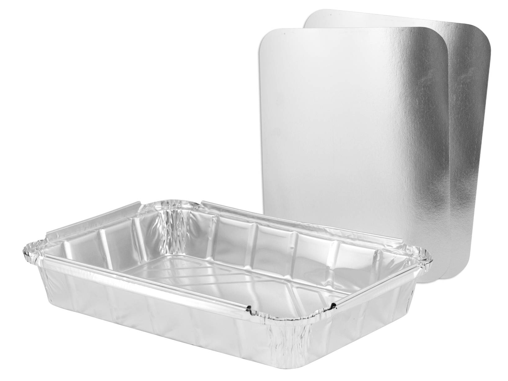 Questo set include 2 contenitori rettangolari in alluminio con dimensioni di 31x21 cm e 5 cm di altezza. I coperchi in cartone facilitano la conservazione e il trasporto di cibi. L'alluminio garantisce una cottura uniforme e una lunga durata. Made in Italy, questi contenitori sono versatili e ideali per una varietà di utilizzi in cucina. LINEA ROTOCHEF,ROTOCHEF