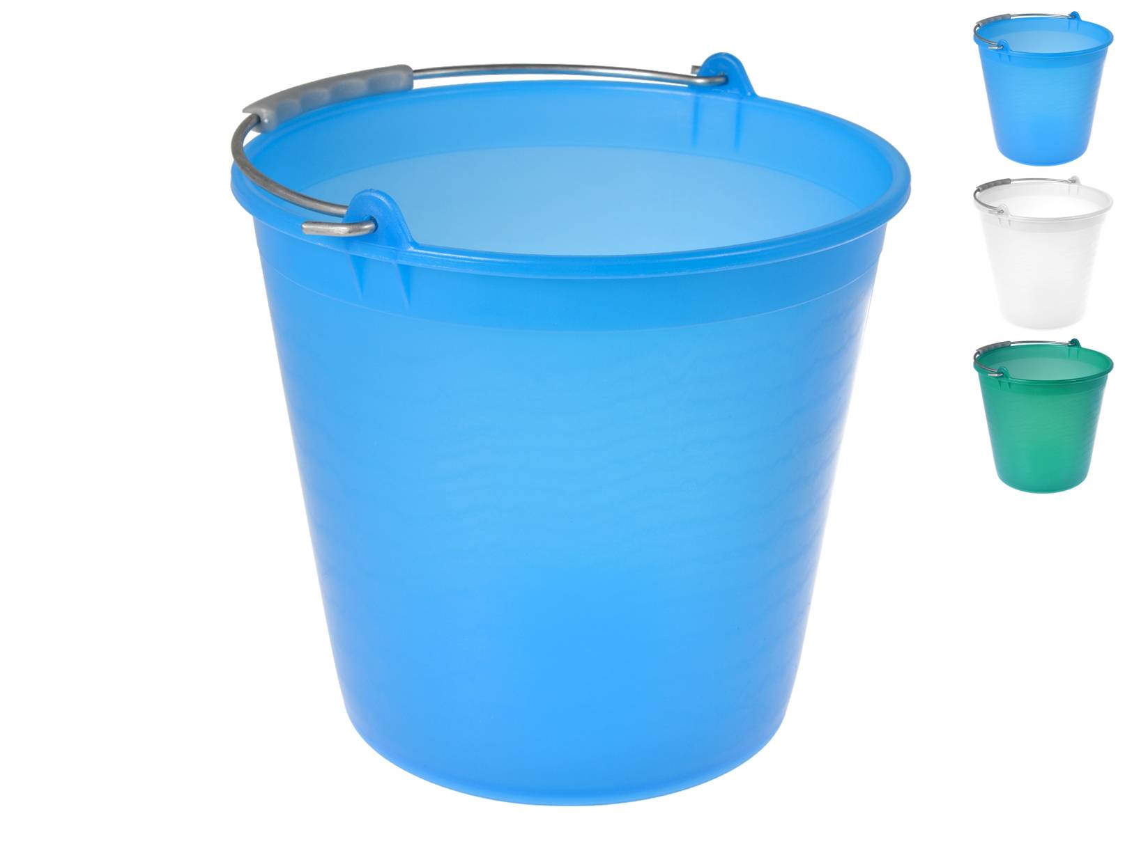Questo secchio in polietilene ha una capacità di 9 litri ed è ideale per trasportare e conservare liquidi. La sua costruzione leggera e resistente lo rende adatto per vari usi in cucina e in altre aree. Realizzato in polietilene, è pratico e funzionale.