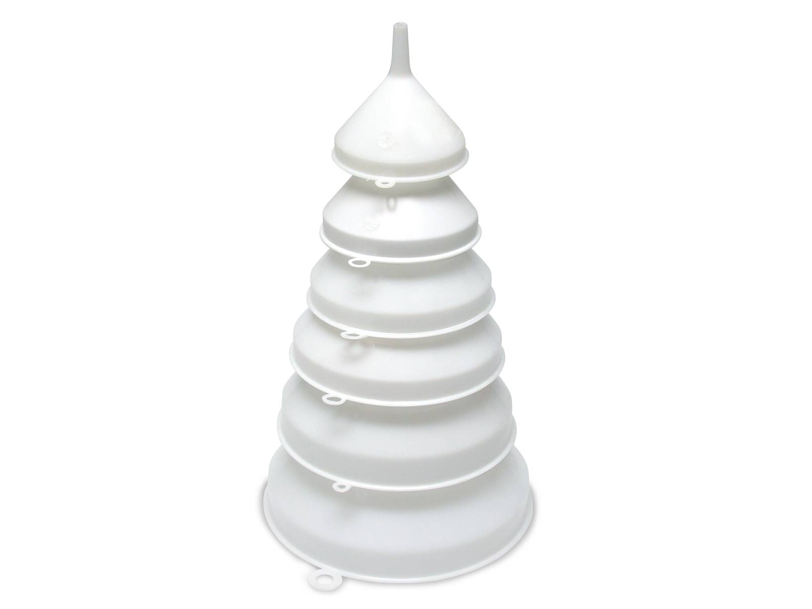 Imbuto in moplen di colore bianco con diametro di 30 cm. Perfetto per travasi industriali, è robusto e affidabile. Adatto a operazioni di grande scala e frequenti.