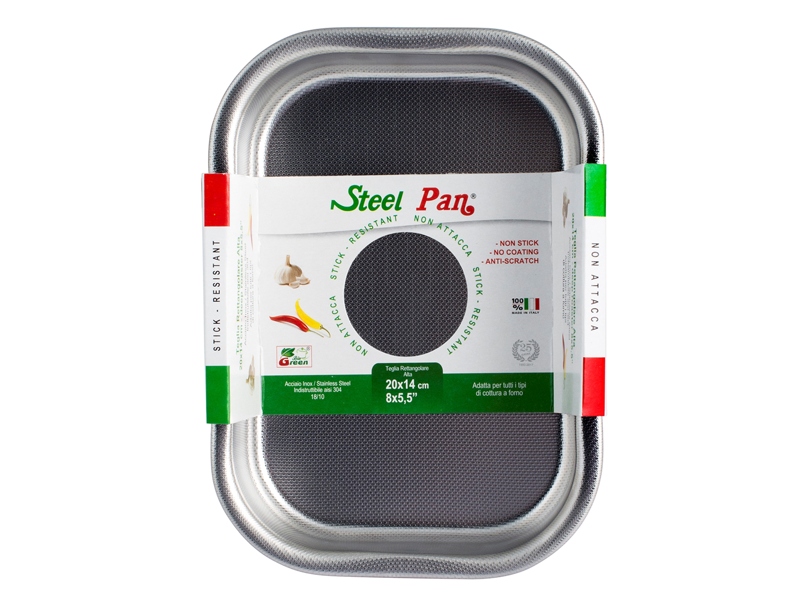Teglia rettangolare alta non stick da 20 cm, perfetta per dolci e piatti al forno.