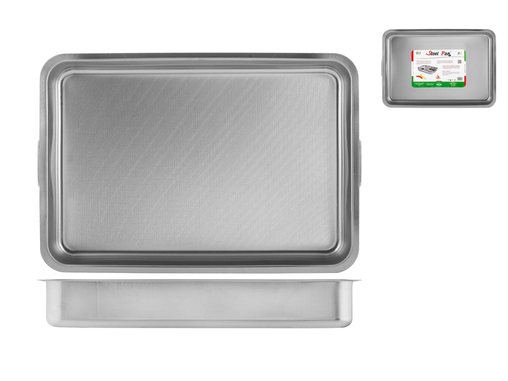 Rosticcera non stick da 50x36 cm in acciaio inox, ideale per grandi preparazioni e arrosti.