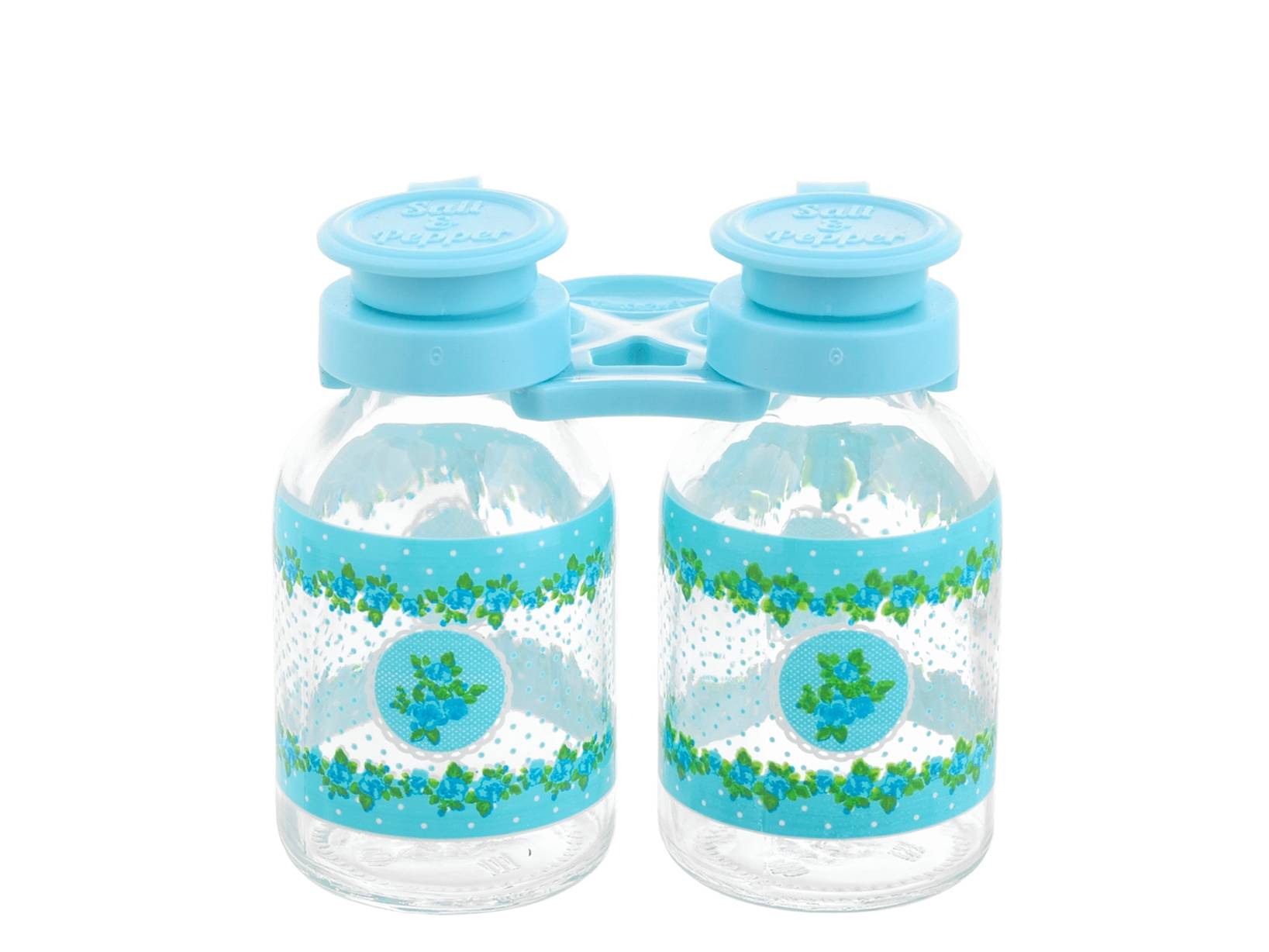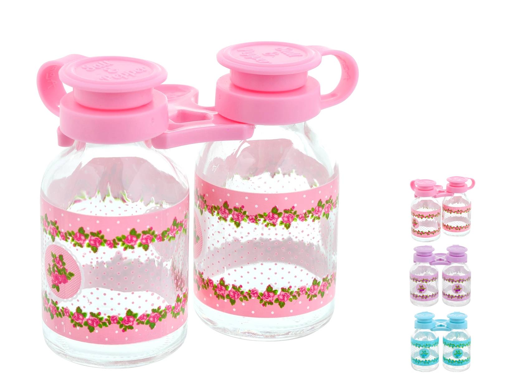 Confezione sale-pepe decoro rose in vetro con tappi in plastica in colori assortiti cm 7x3x7 h.