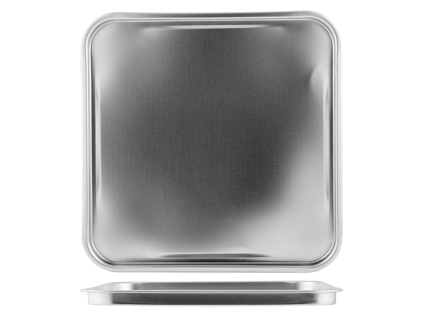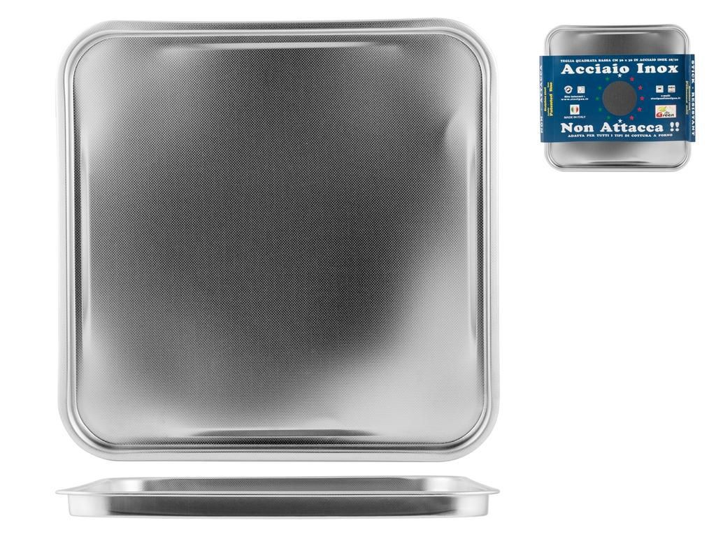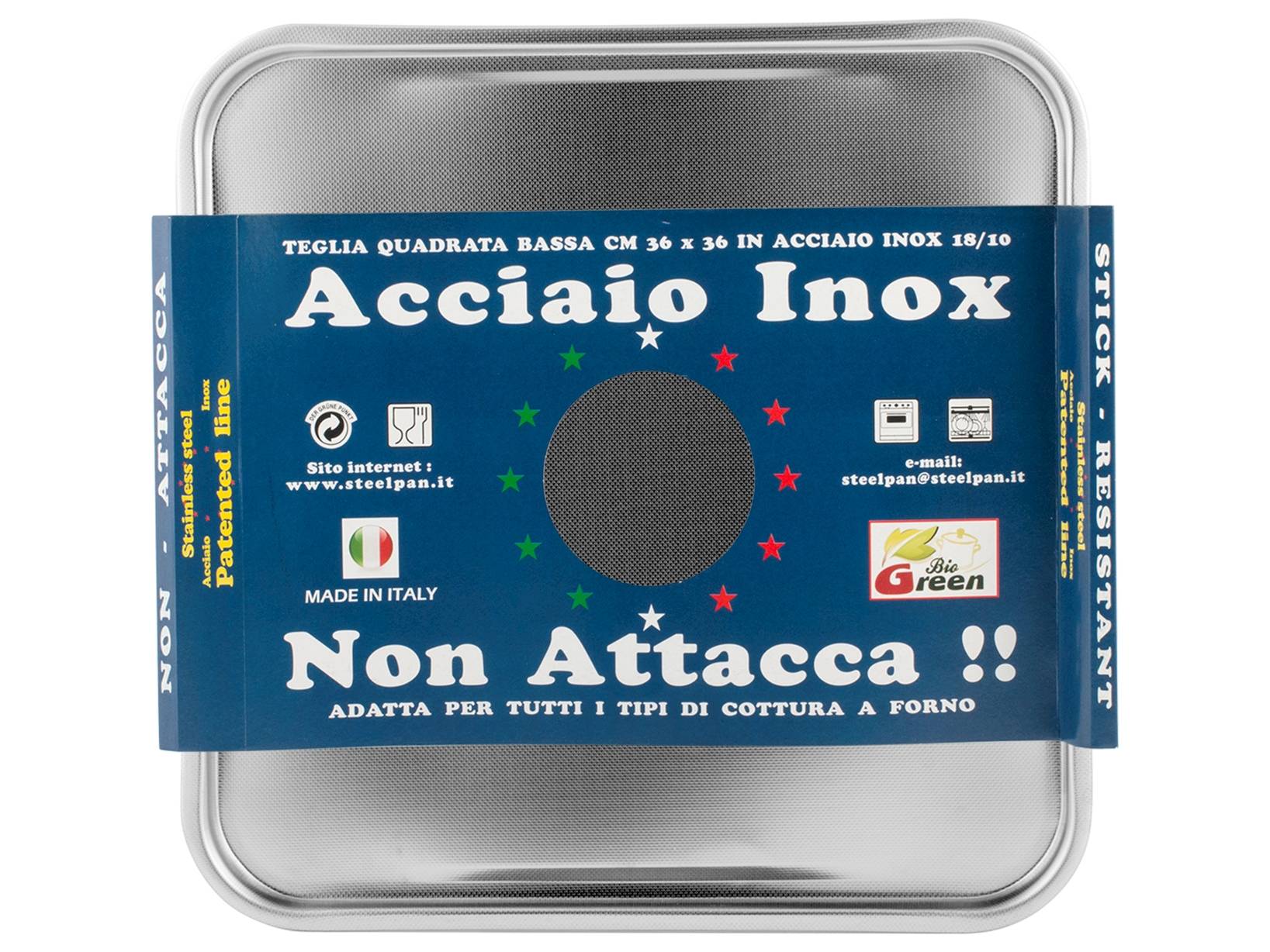 Teglia bassa quadrata non stick da 36 cm in acciaio inox, per preparazioni al forno di grandi dimensioni.