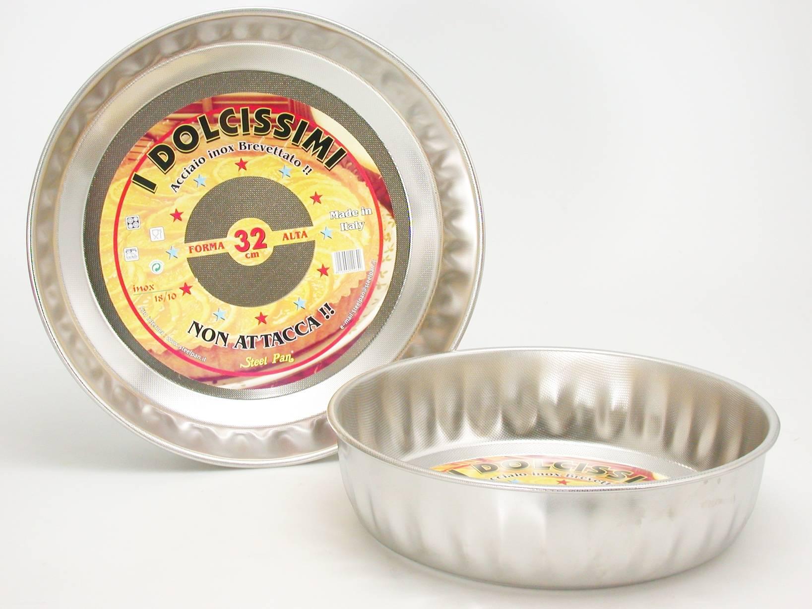 Stampo dolci alto non stick da 32 cm in acciaio inox, ideale per preparazioni al forno.