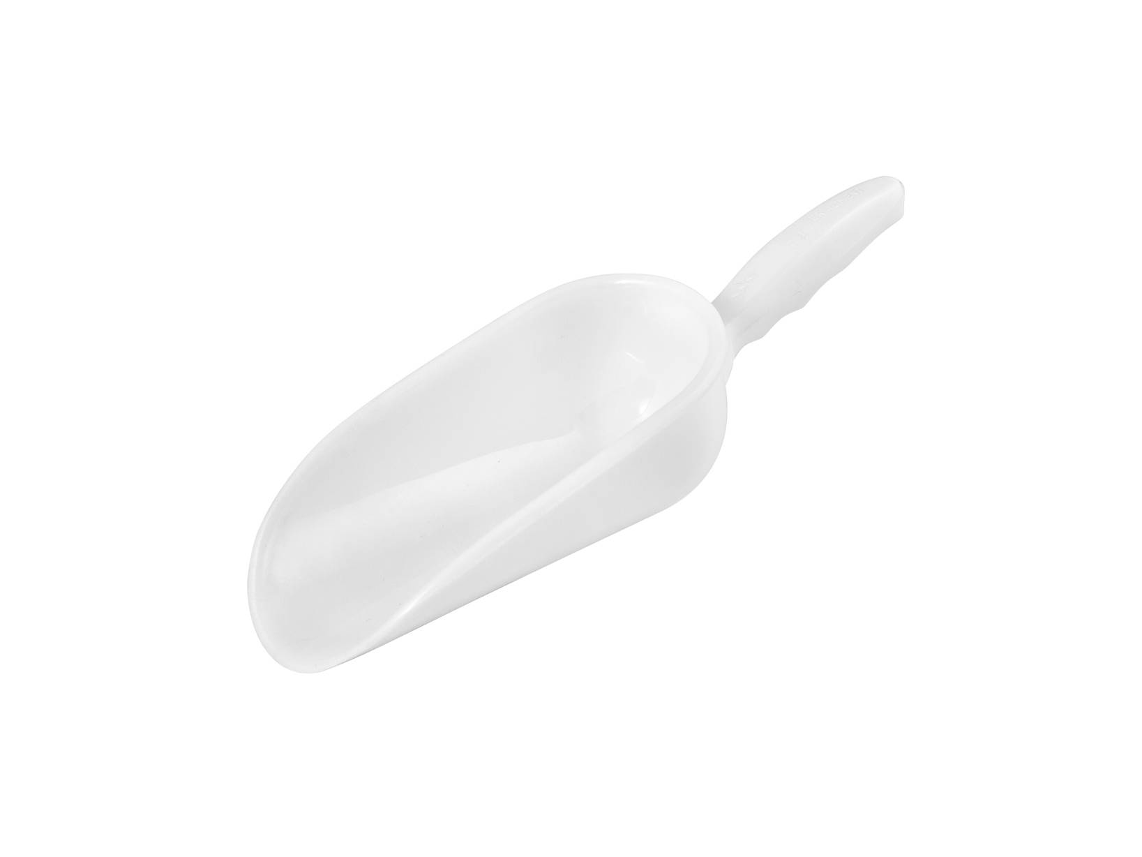 Sessola tonda in Moplen di colore bianco, con diametro di 19 cm. Pratica e maneggevole, ideale per raccogliere e spostare piccoli quantitativi di ingredienti o polveri.
