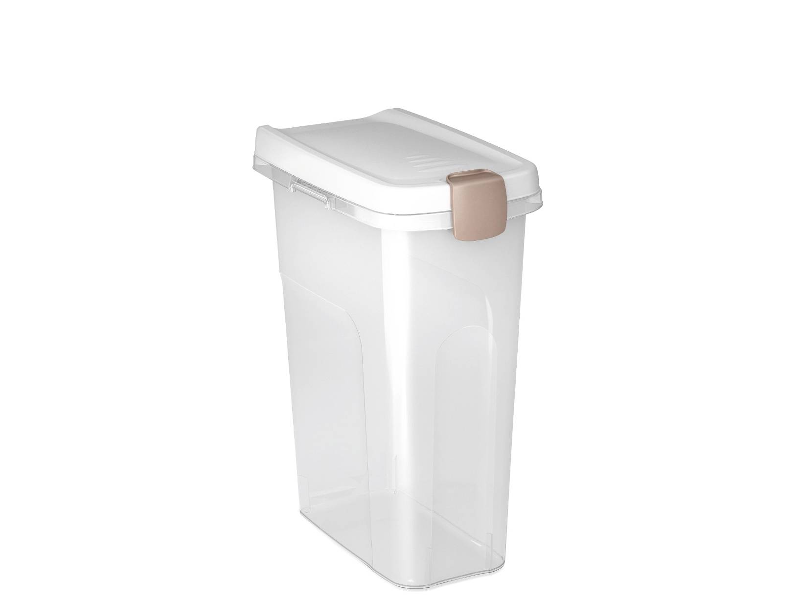 Contenitore pet food in polipropilene trasparente con coperchio a chiusura ermetica bianco lt 25 Made in Italy.
