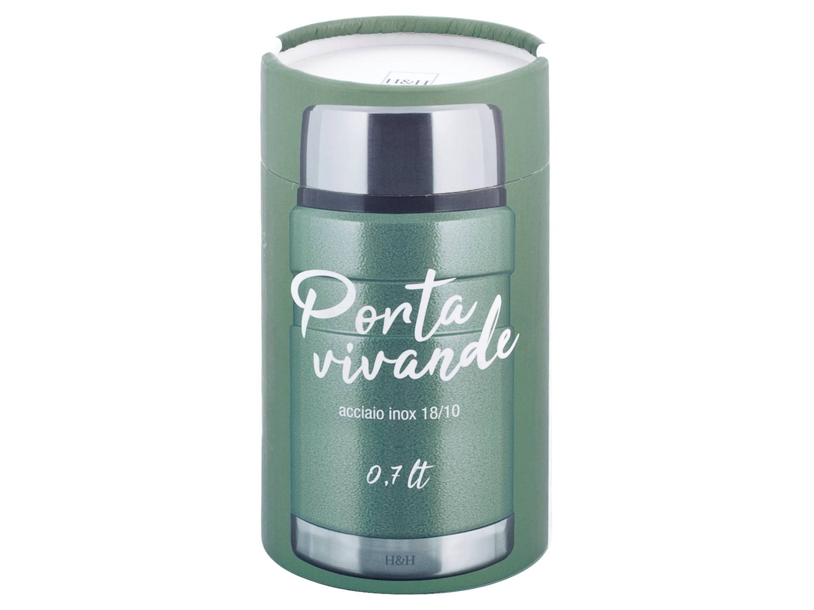 Il pratico porta vivande H&H in acciaio inox, colore verde da 0,7 litri, unisce stile e funzionalità. Ideale per mantenere il cibo fresco in movimento, con un design accattivante e materiali di alta qualità. Perfetto compagno per pasti deliziosi ovunque tu vada. H&H,heh