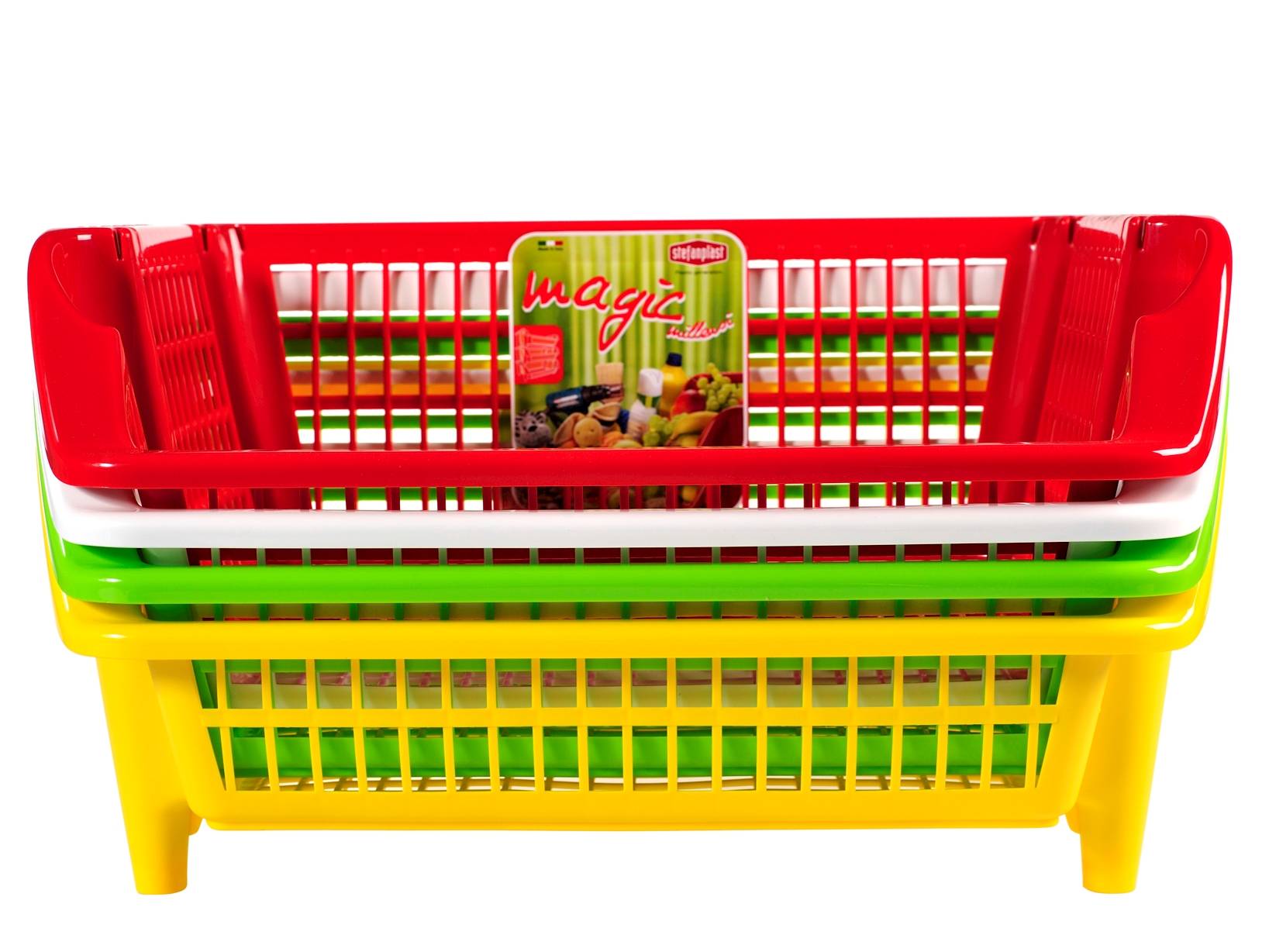 Cestello rettangolare magic milleusi in plastica riciclabile bianca. Dimensioni: cm 54x24hx39. Cestello dalle molteplici funzionalità e dai numerosi utilizzi diversi. Pratico com eporta frutta, ma anche per riorganizzare oggettistica, per lo stoccaggio e molto altro. LINEA MAGIC MILLEUSI