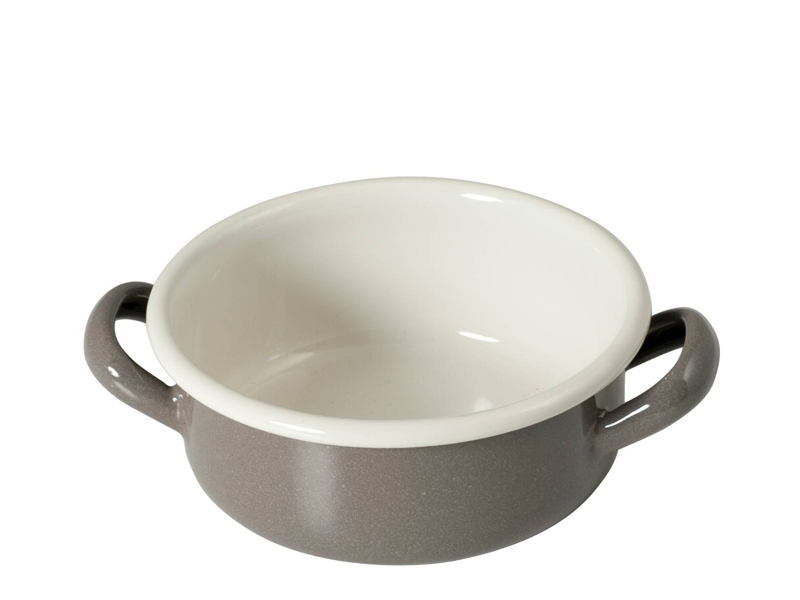 Tegamino smaltato da 10 cm, avorio/tortora, design rétro.