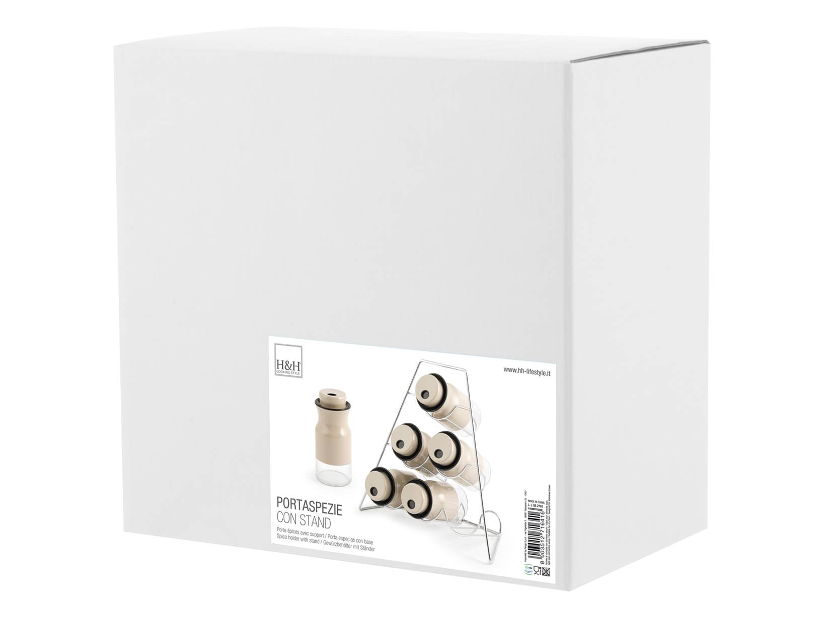H&H Porta Spezie Con 6 Barattoli In Vetro Con Stand In Acciaio