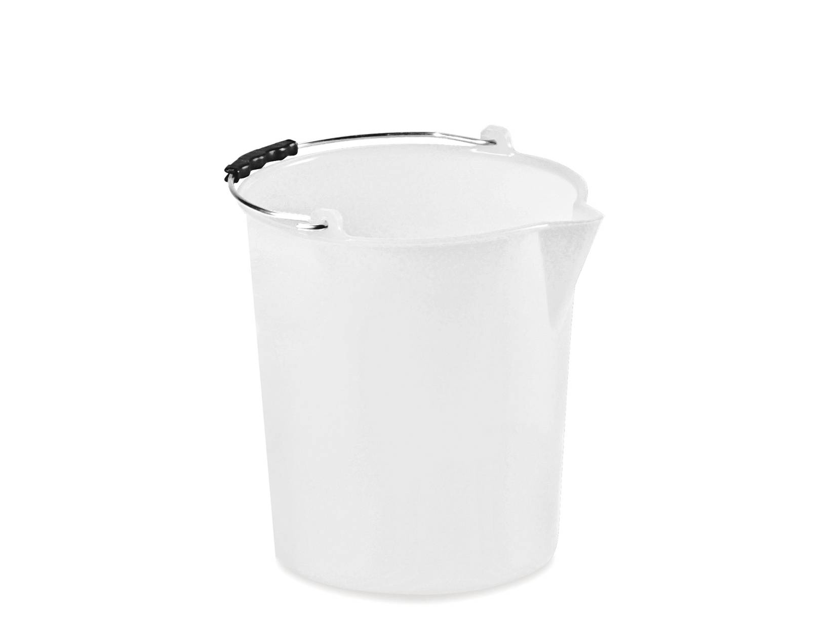 Secchio con becco in politene bianco, capacità di 9 litri. Made in Italy.