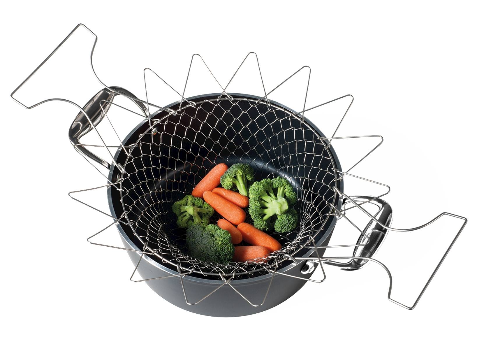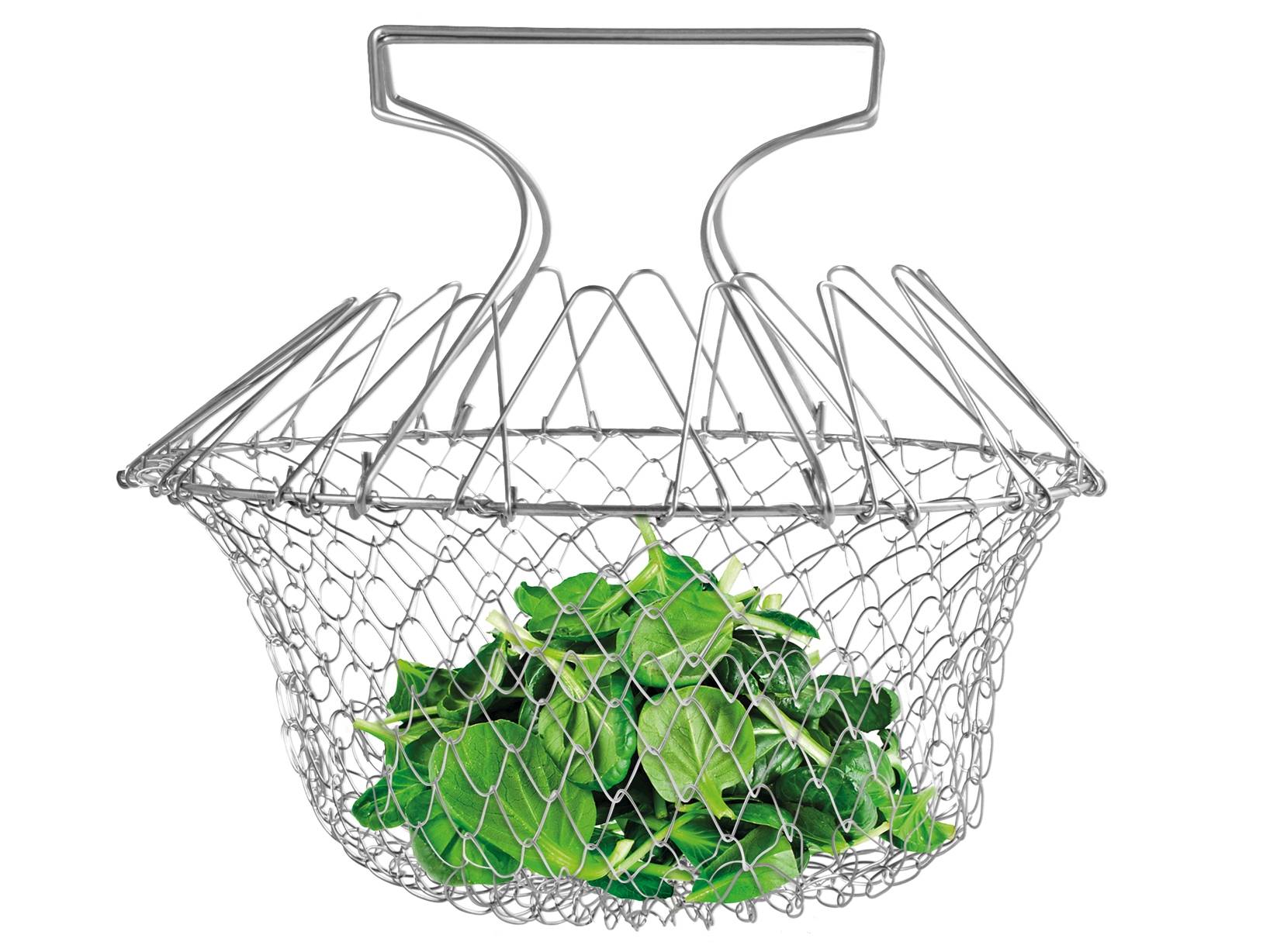 Cestello da cucina in acciaio inox 18/10 di alta qualità, con un diametro di 23 cm. Questo cestello è perfetto per scolare pasta o verdure e resisterà all'uso quotidiano.