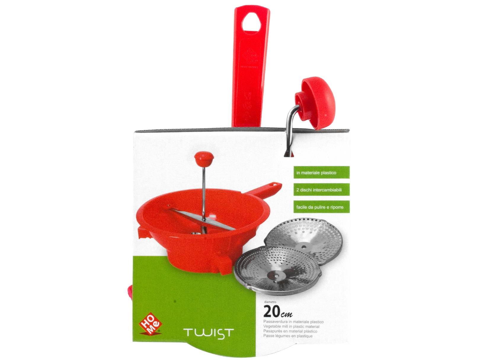Ideale per schiacciare qualsiasi tipo di verdura, salsa di pomodoro, ottenere delle puree per neonati, con 3 dischi per grattugiare, le gambe pieghevoli e la manovella smontabile permettono di riporlo occupando poco spazio. LINEA TWIST,TWIST,HOME,conservazione