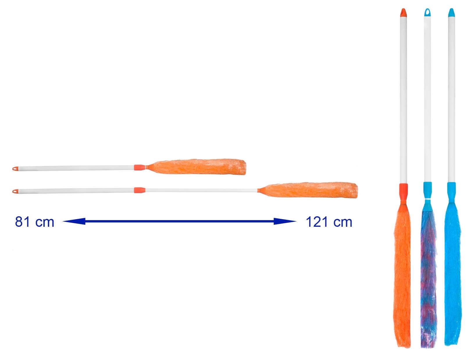 Piumino in polipropilene con manico allungabile fino a cm 122. Lunghezza a manico chiuso di cm 81.