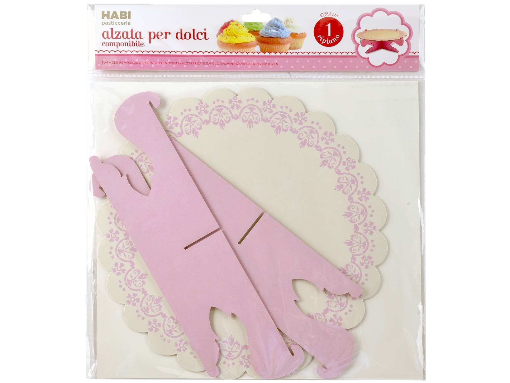 Alzatav in cartone 1 piano rosa e avorio "HABI pasticceria".