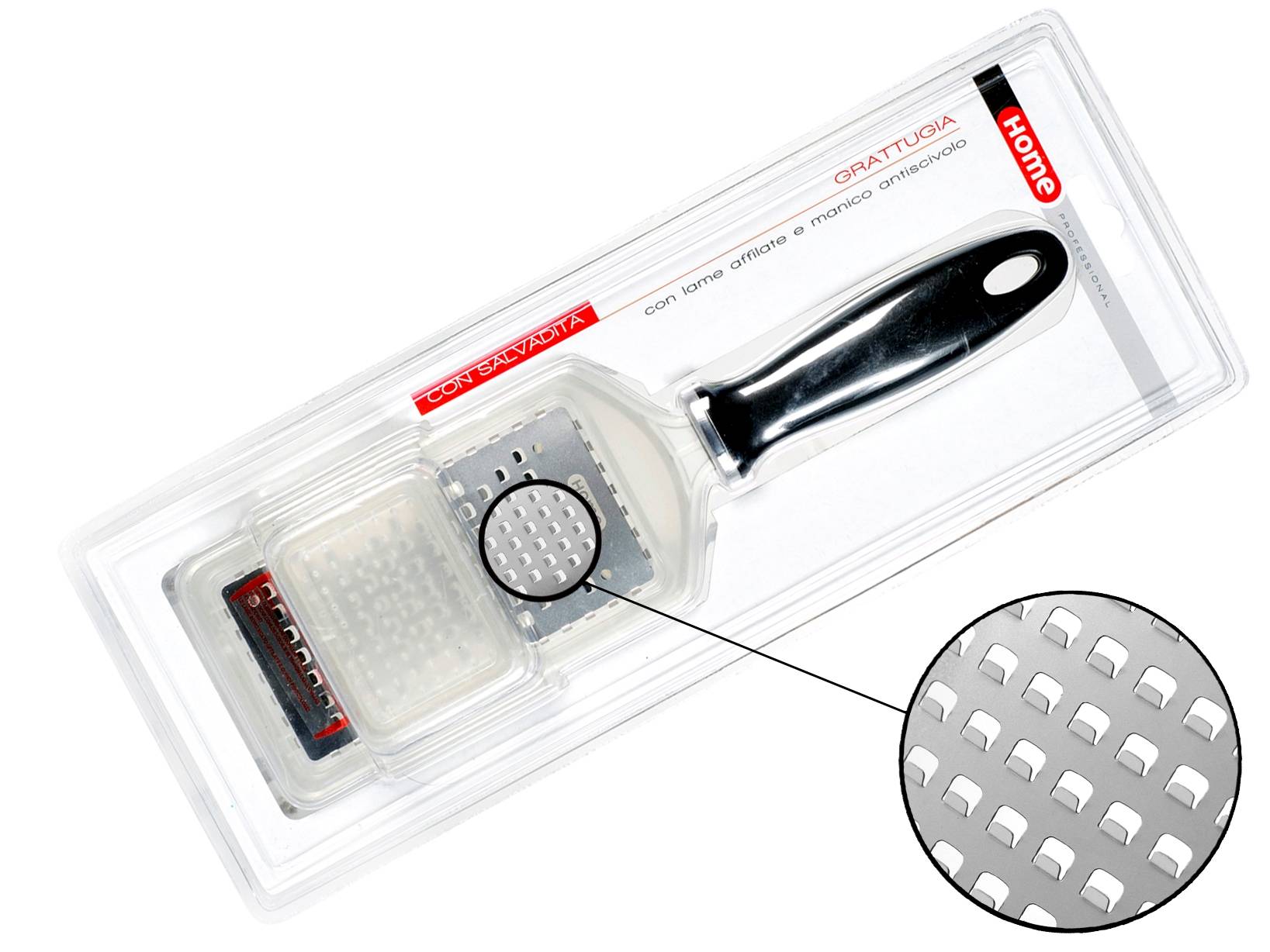 Grattugia Con Salvadita Acciaio Inox Con Manico Antiscivolo