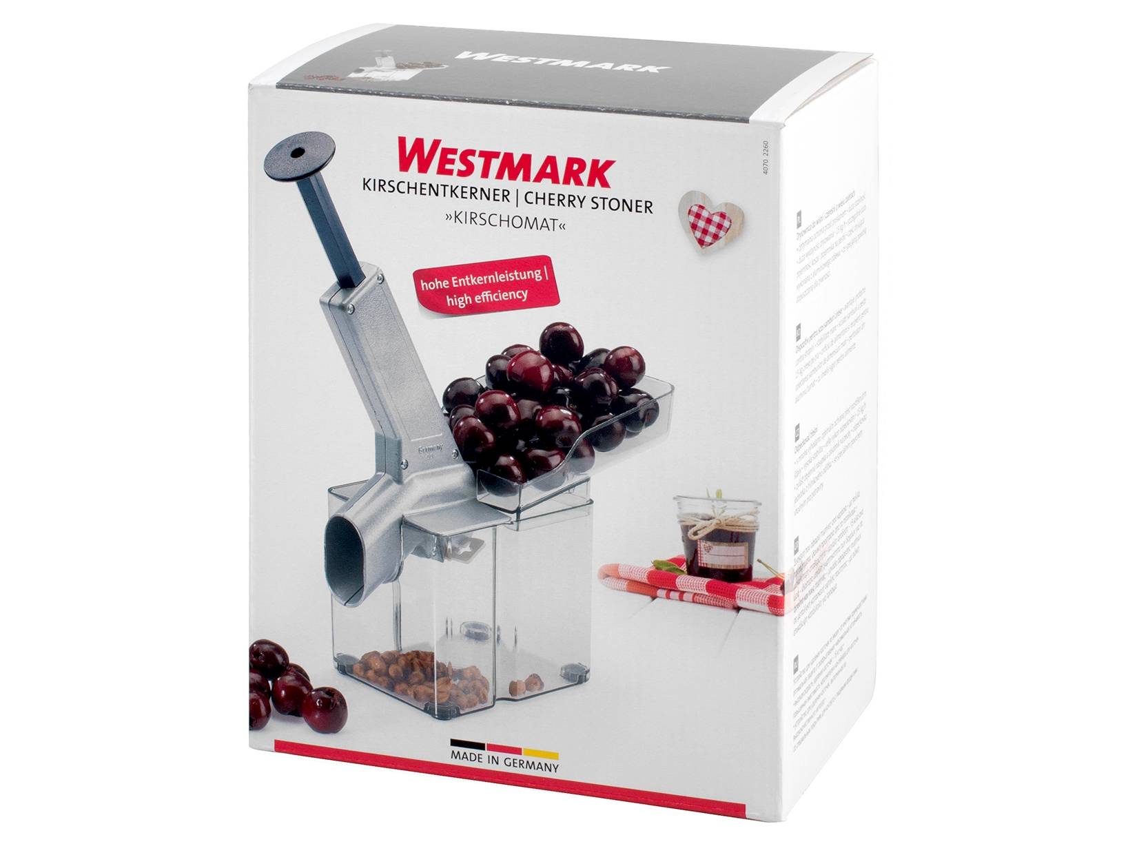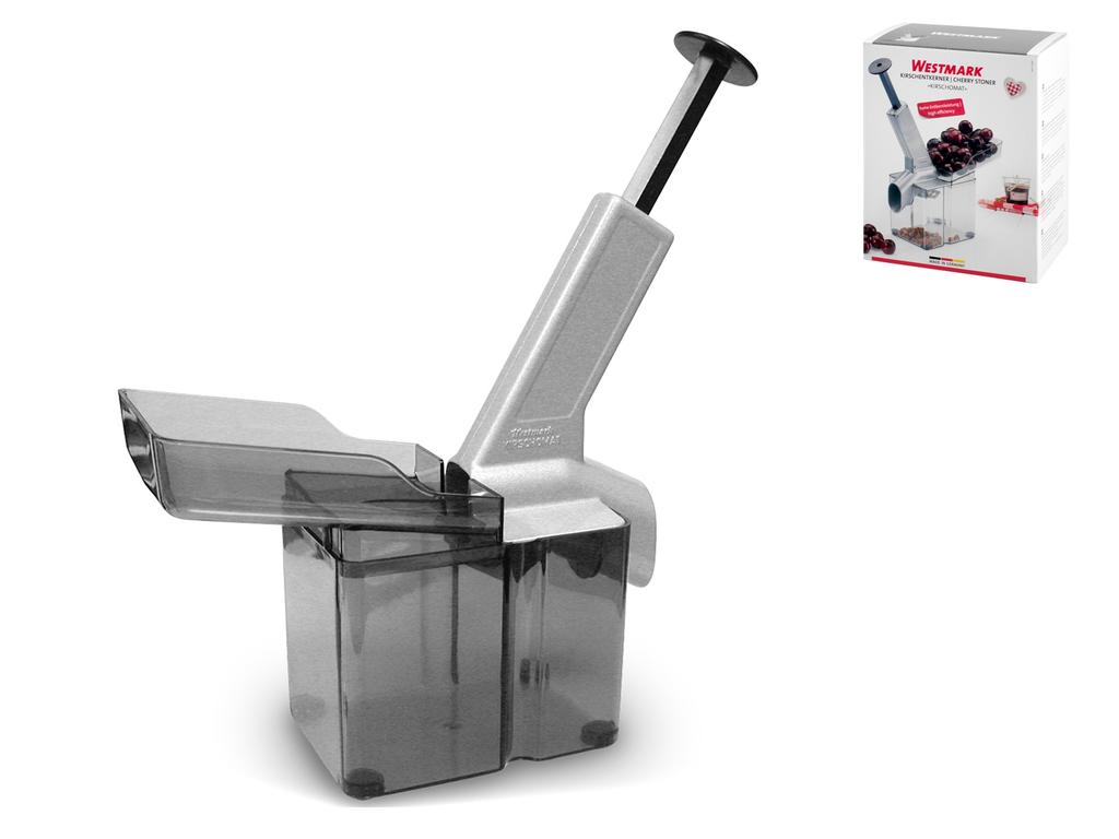 Snocciola ciliegie Kirshomat in alluminio pressofuso con rivestimento specifico per alimenti. Snocciolatore Ciliegie Kirschomat è uno strumento indispensabile per snocciolare rapidamente e con facilità grandi quantità di ciliegie. E' composto da una vaschetta per la raccolta dei noccioli e un vassoio inclinato per il posizionamento delle ciliegie, entrambi realizzati in plastica trasparente. LINEA WESTMARK,conservazione