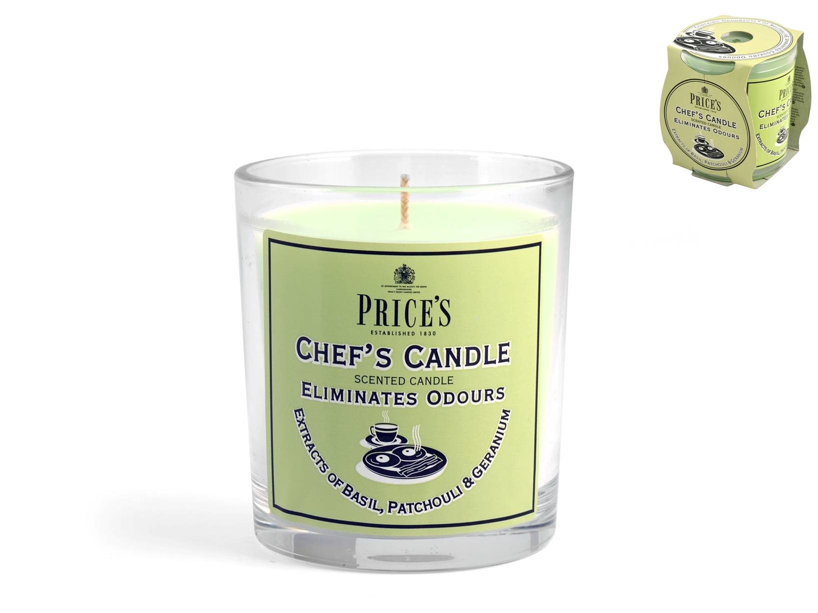 Dai un tocco di eleganza e freschezza alla tua casa con la Candela Freshair Chef’s Candle 30H di Price’s Candle. Dal raffinato colore verde, questa candela è arricchita con estratti di basilico, patchouli e geranio, creando una fragranza avvolgente e sofisticata che purifica l’aria. Perfetta per cucine, salotti e ambienti accoglienti, la Chef's Candle offre 30 ore di profumo duraturo, trasformando ogni angolo della tua casa in un rifugio di tranquillità e relax. LINEA FRESHAIR