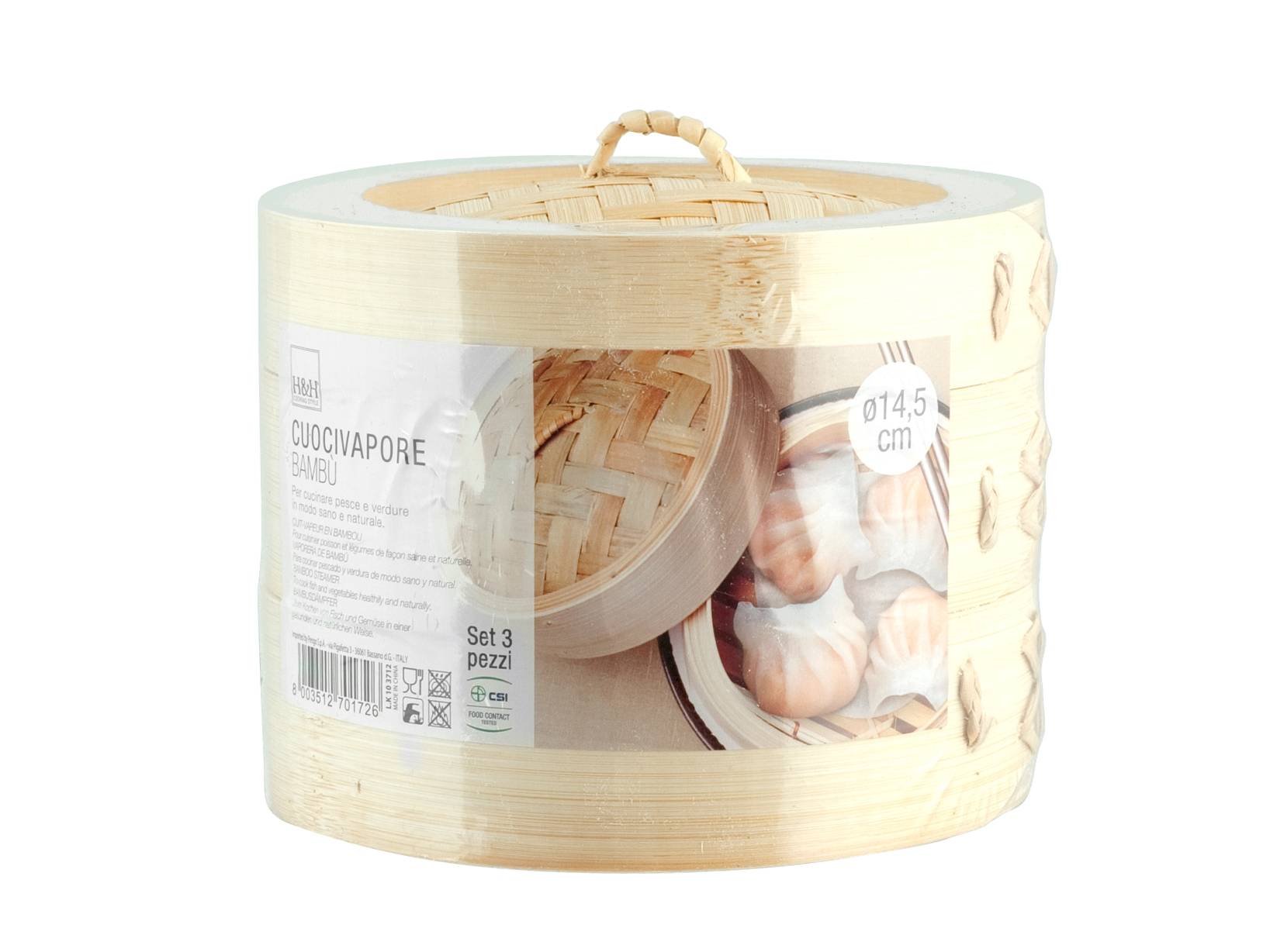 H&H Cestello 2 Livelli Orientale Cottura Vapore In Bamboo Cm14,5