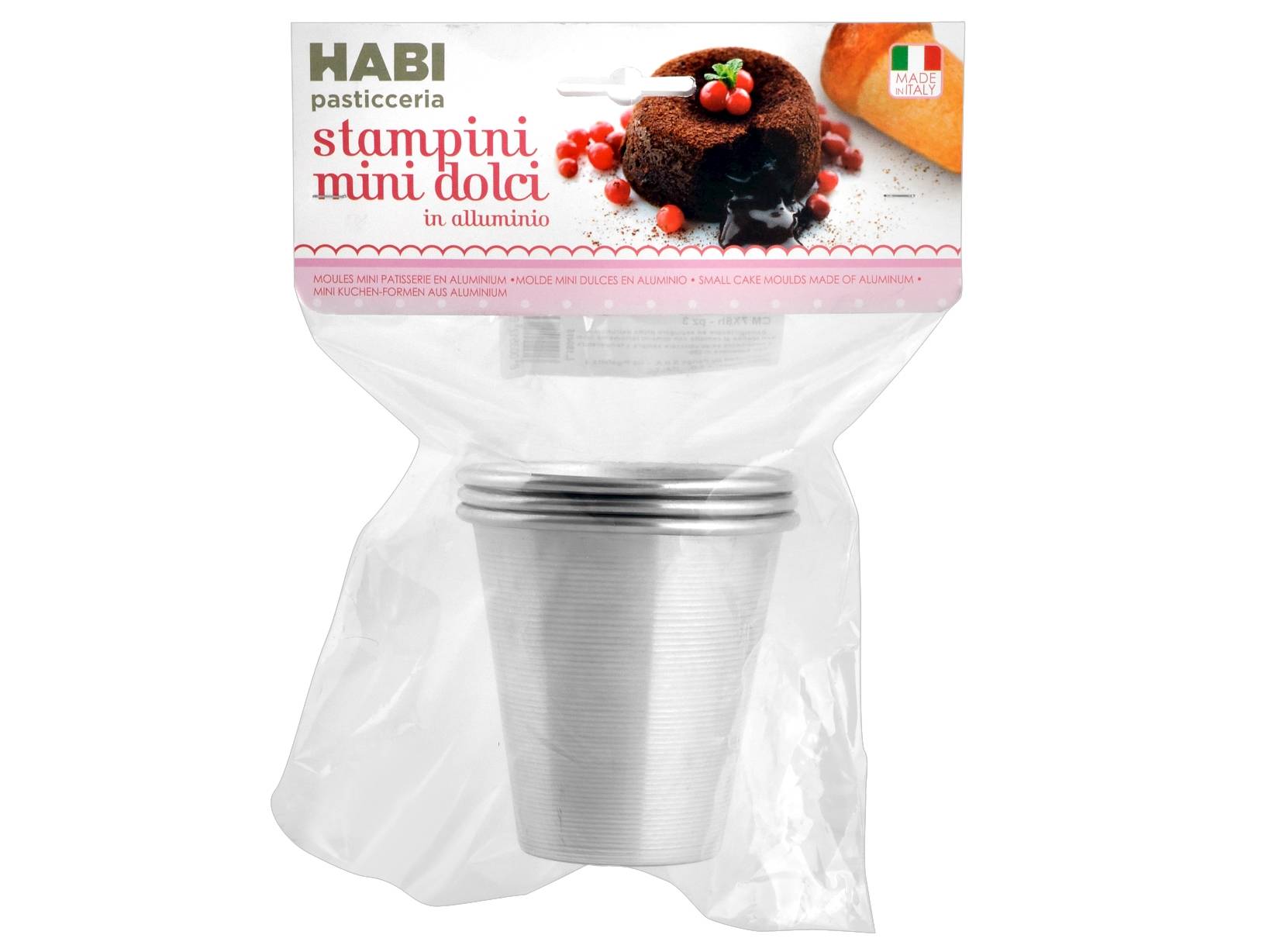 Set di 3 formine in alluminio, ideali per preparare babà e dolci simili. Con dimensioni di 7x8 cm, sono perfette per ottenere dolci dalla forma tradizionale. LINEA HABI PASTICCERIA,HABI PASTICCERIA