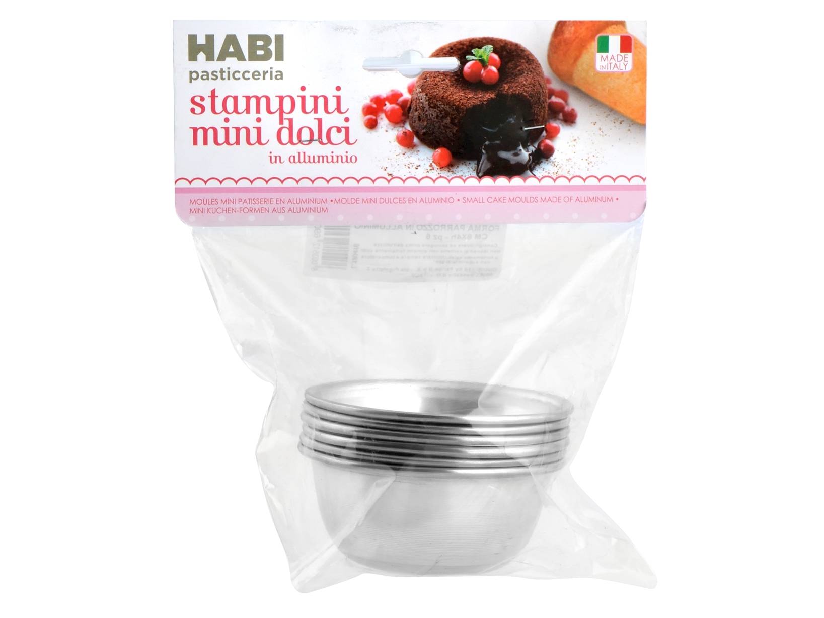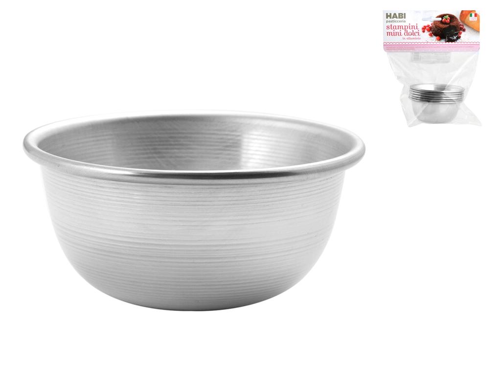 Set di 6 formine in alluminio per parrozzo, ideali per preparare dolci tradizionali. Con dimensioni di 8x4 cm, sono perfette per dolci di dimensioni medie.