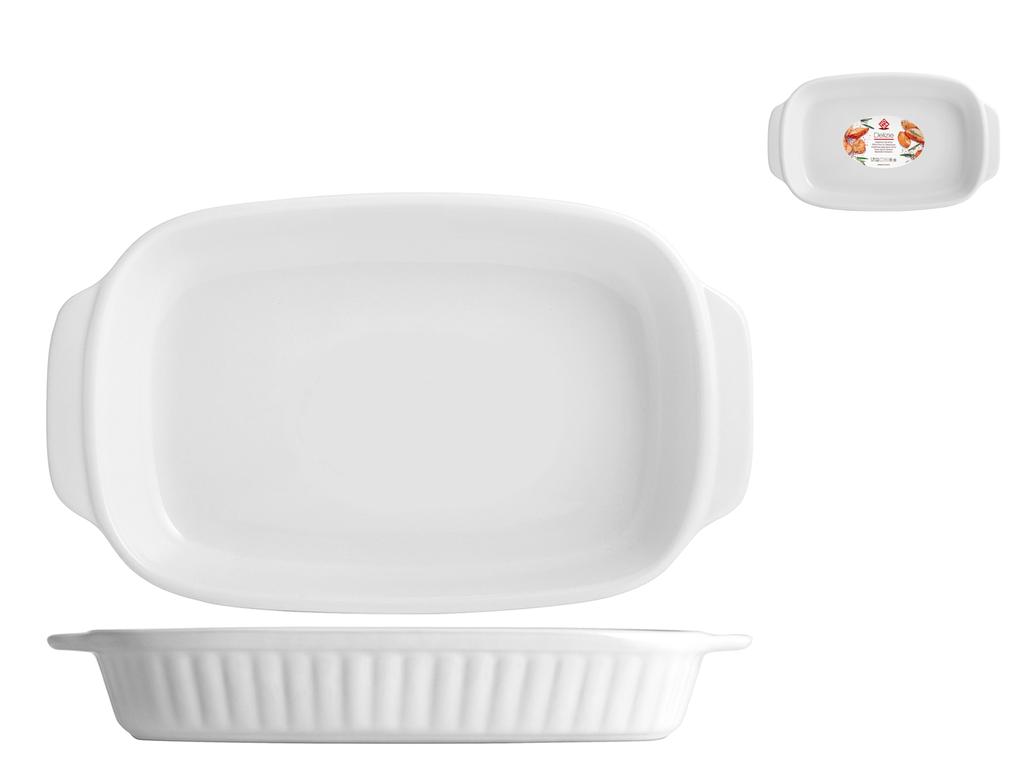 Versatile pirofila rettangolare in ceramica bianca, perfetta per preparare e servire piatti abbondanti come casseruole, arrosti e lasagne. Le dimensioni di 30x18 cm e l'altezza di 4,5 cm la rendono ideale per ricette generose e conviviali. LINEA DELIZIE,DELIZIE