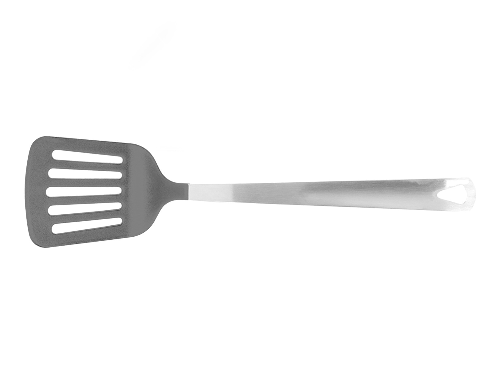 Paletta forata in acciaio inox e nylon cm8la parte piatta e fine si insinua tra il cibo e il fondo della pentola, inoltre essendo in nylon non graffia il fondo e può essere utilizzata anche con pentole antiaderenti. LINEA INOX&NYLON,H&H,heh