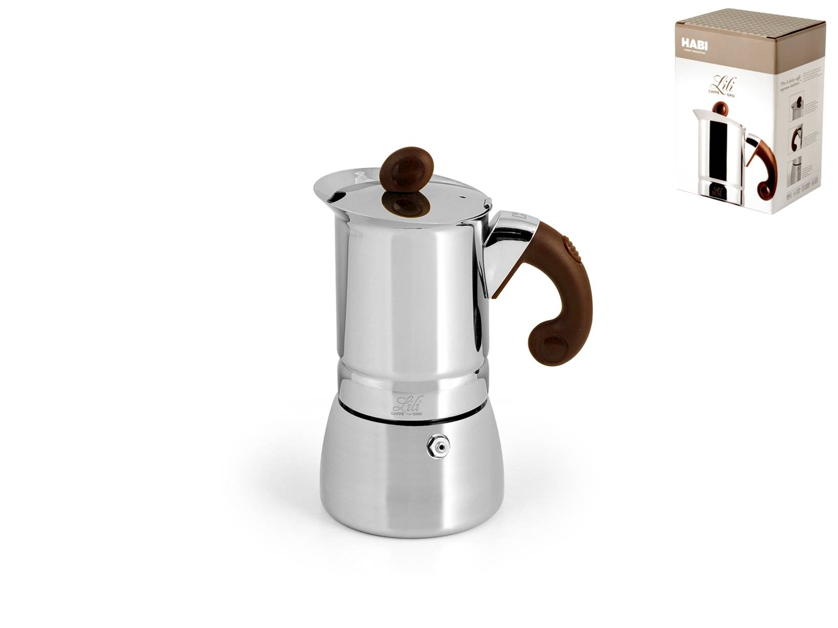 La caffettiera Lili Caffè Oro da 2 tazze in acciaio inox è un’elegante scelta per preparare un caffè raffinato anche su piani a induzione. Il suo design sofisticato e la finitura dorata la rendono un'aggiunta chic alla tua cucina, mentre la sua compatibilità con induzione offre versatilità. LINEA LILI,LILI