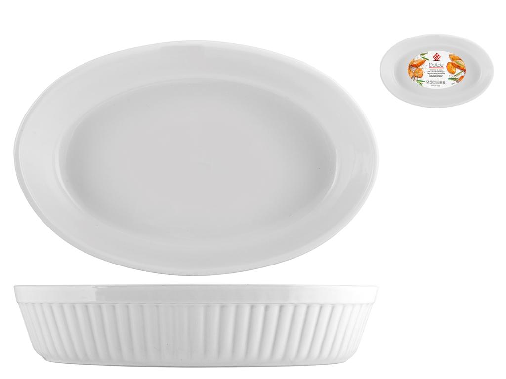 Grande pirofila ovale in ceramica bianca, ideale per preparare abbondanti porzioni di piatti al forno come lasagne e casseruole. Con dimensioni di 37x25 cm e un'altezza di 7,5 cm, è perfetta per occasioni speciali e grandi famiglie. LINEA DELIZIE