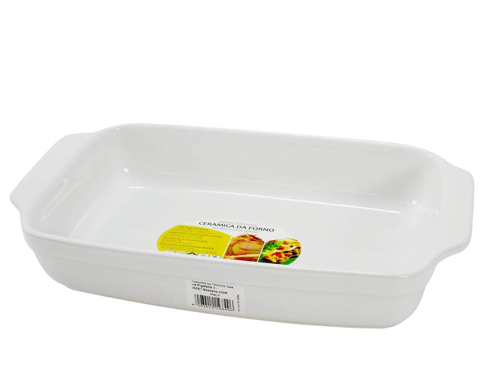 Pirofila rettangolare in porcellana bianca. Dimensioni: 30x5. 5hx18. Resistente e solida, la pirofila in bianca ceramica di home è il miglior alleato in cucina per rispolverare i piatti della tradizione o per sperimentare nuove ricette. Dotata di due pratiche maniglie. È adatta al lavaggio in lavastoviglie ed all'utilizzo in forni tradizionali ed a microonde. LINEA DELIZIE,DELIZIE