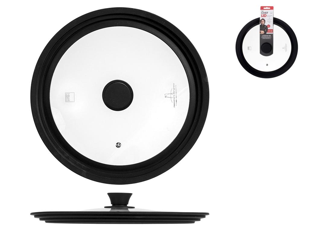 Coperchio in vetro con bordo in silicone, completo di valvola di sfiato. Coperchio multimisura adattabile a tre diversi diametri cm 28-30-32. H&H e Alessandro Borghese - il lusso della semplicità. LINEA BORGHESE UTENSILI,BORGHESE UTENSILI,borghese,H&H,heh,Alessandro Borghese