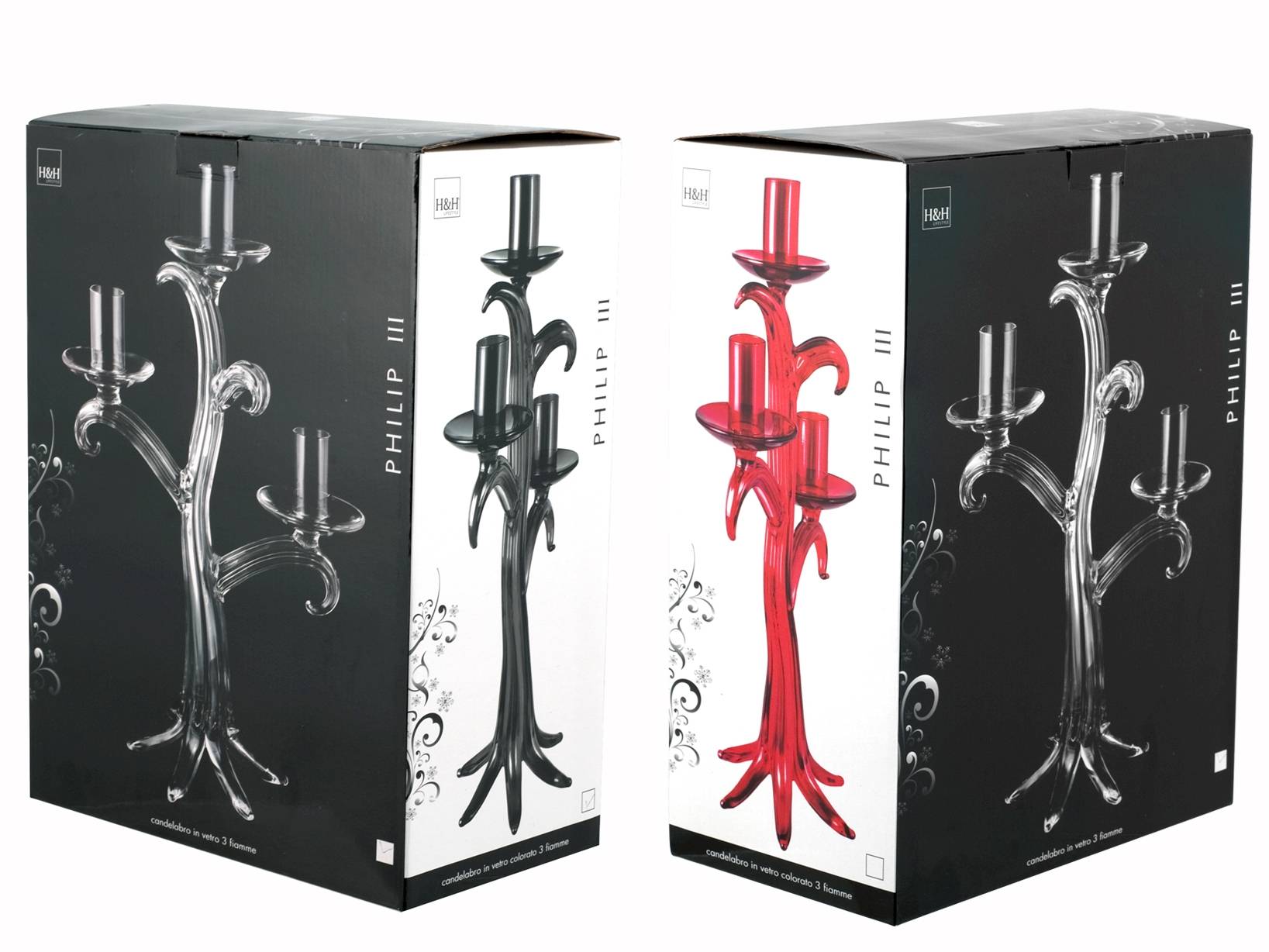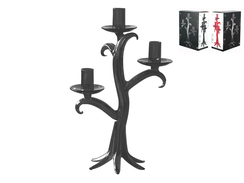Il candeliere a 3 fiamme in vetro nero, con un’altezza di 31 cm, è un simbolo di eleganza moderna. Ogni fiamma illumina con un calore sofisticato, creando un'atmosfera intima e accogliente per i tuoi pranzi e cene. Disponibile anche nella versione a 1 fiamma e nei colori rosso e trasparente. H&H,heh