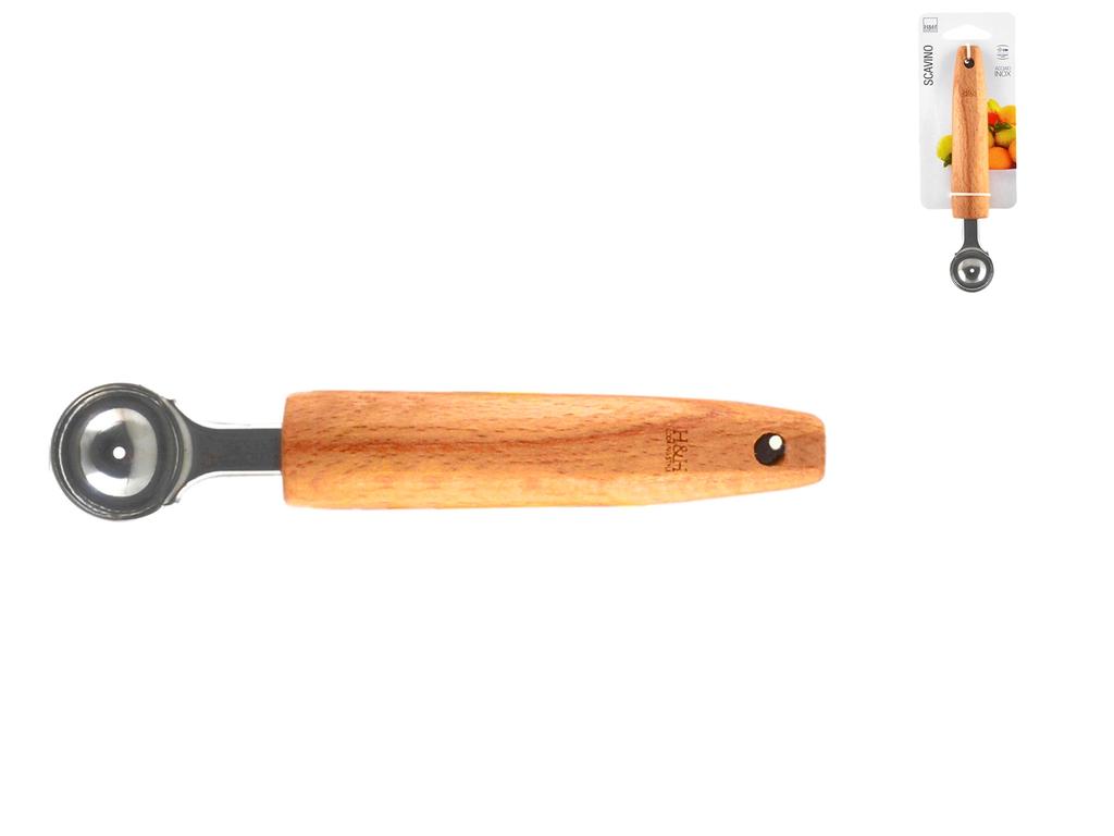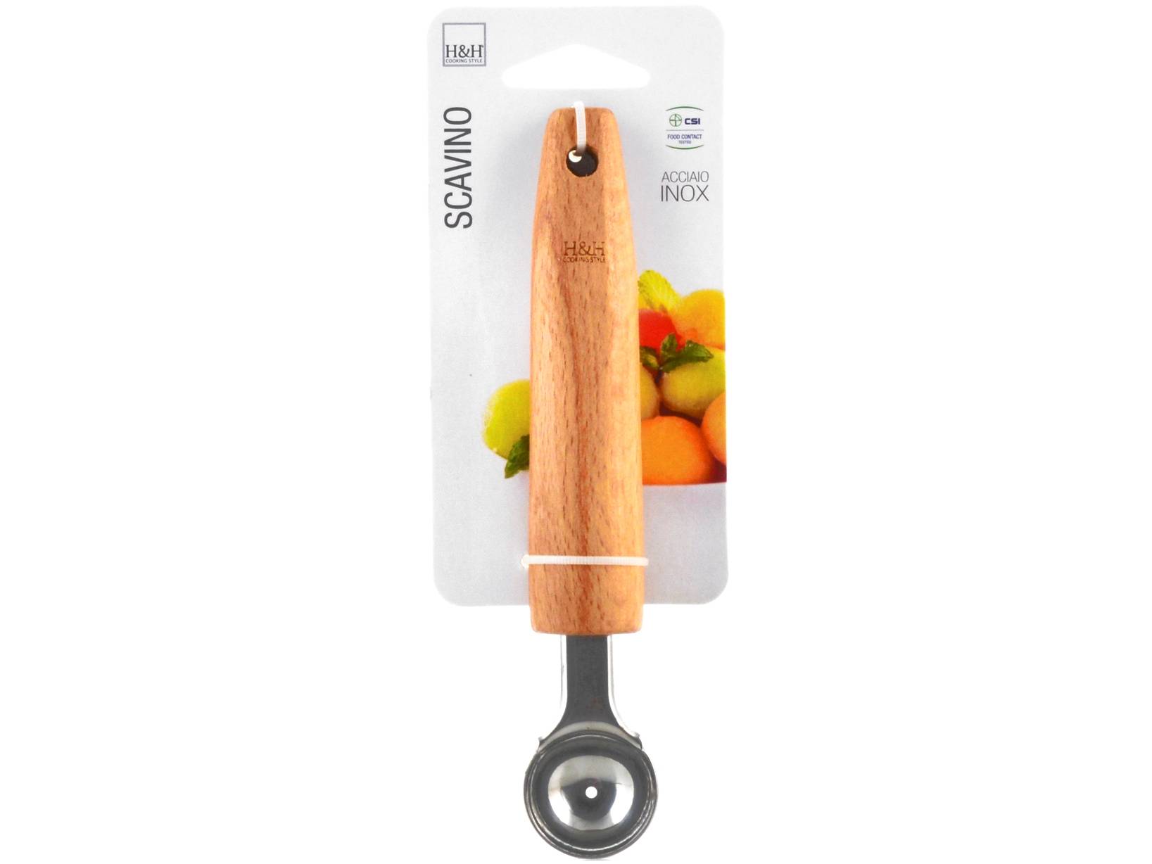 Scavino per melone in acciaio inox con manico in legnolinea utensili per tagliare, affettare, decorare, mescolare, scolare, grattugiare, cucinare e preparare tutti i tuoi piatti nel modo più Efficiente grazie alla scelta dello strumento giusto per ogni lavorazione, realizzati in acciaio inox e tutti con un manico in legno dall'effetto naturale personalizzato con il nostro logo, per una cucina attrezzata e coordinata. LINEA WOOD UTENSIL,WOOD UTENSIL,H&H,heh