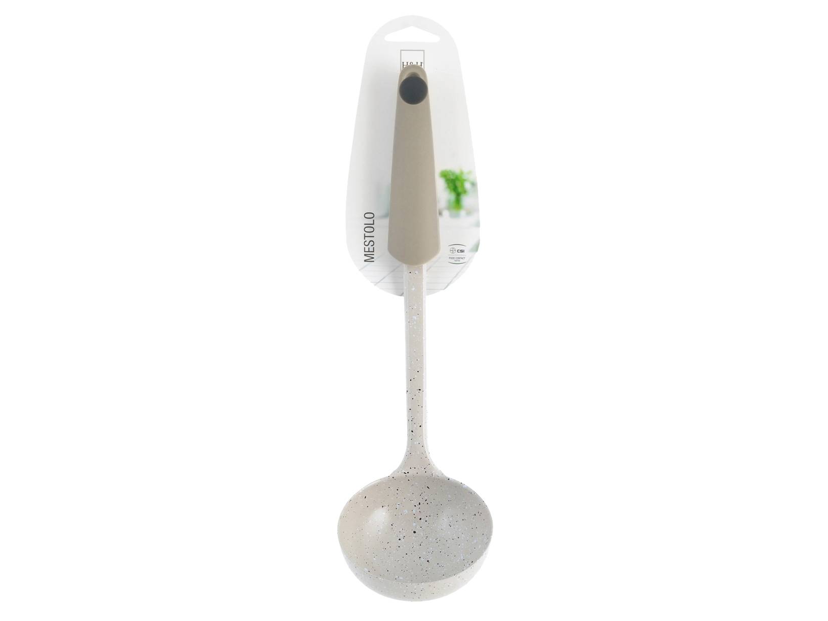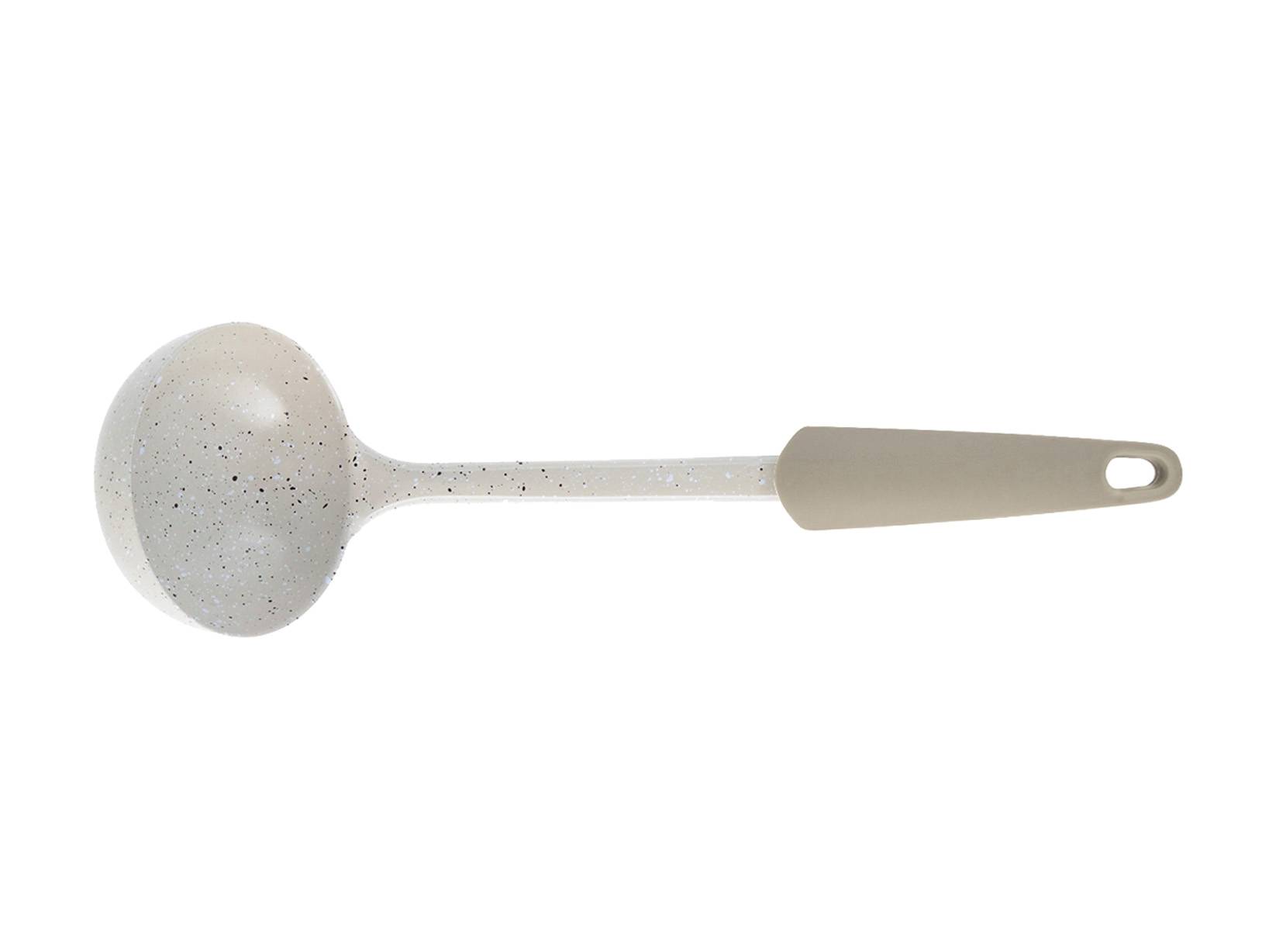 Mestolo in acciaio inox di alta qualità, dotato di rivestimento antiaderente che facilita la cottura e la pulizia. Il manico antiscivolo garantisce una presa sicura, rendendolo ideale per ogni tipo di preparazione in cucina. LINEA STONE LINE,H&H,heh