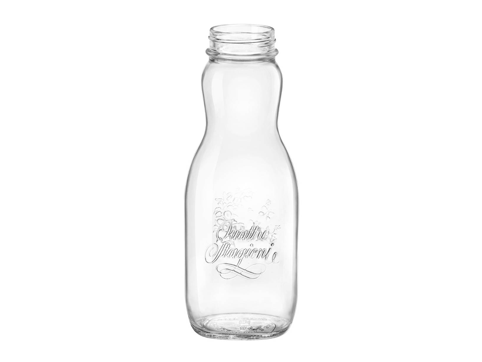 Bottiglia Juice da 1 litro, un classico per conservare succhi freschi e bevande. Il vetro trasparente non solo esalta il contenuto, ma garantisce anche una chiusura sicura per mantenere la freschezza. LINEA 4 STAGIONI,Bormioli Rocco,conservazione