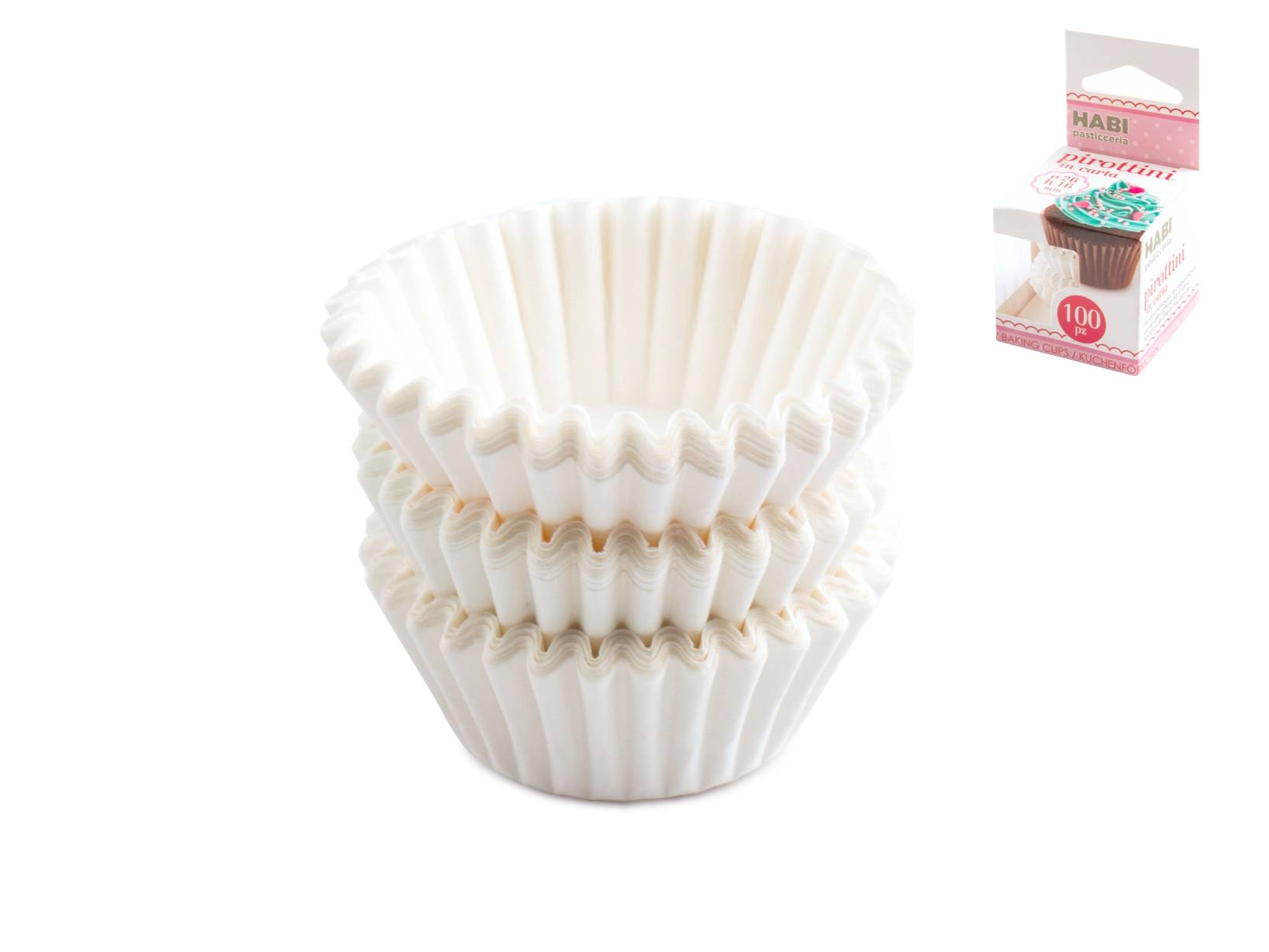 Confezione 100 pirottini linea pasticceria in carta da forno bianchi cm 2,6x1,6 h.