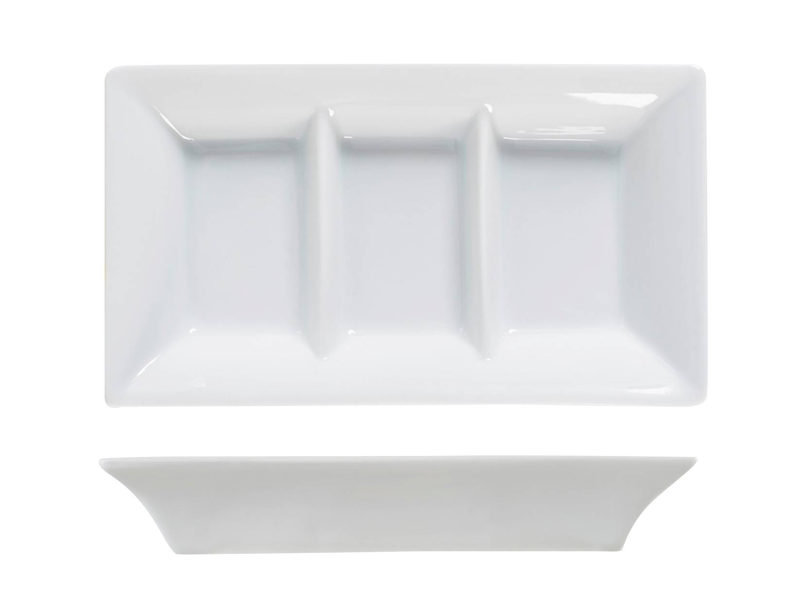 Antipastiera rettangolare in porcellana bianca con tre posti, misura 8,5x15 cm. Perfetta per servire una varietà di antipasti o snack, questa antipastiera offre un design elegante e una comoda suddivisione in tre sezioni. LINEA PORCELLANA BIANCA,H&H,heh