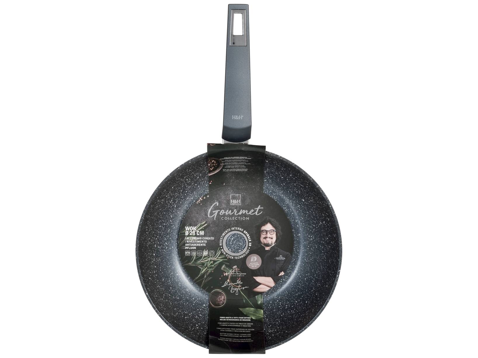 Wok 1 manico gourmet in alluminio coniato con rivestimento antiaderente pfluon con spirale 3d non-stick technology, fondo adatto anche per piani ad induzione, manico soft touch. All'interno le "kitchen tips" di chef Alessandro Borghese: ricette, consigli, segreti. E tanti disegni da conservare e collezionare. H&H e Alessandro Borghese - il lusso della semplicità . LINEA GOURMET BORGHESE,OUTLET,SCONTO40,H&H,heh
