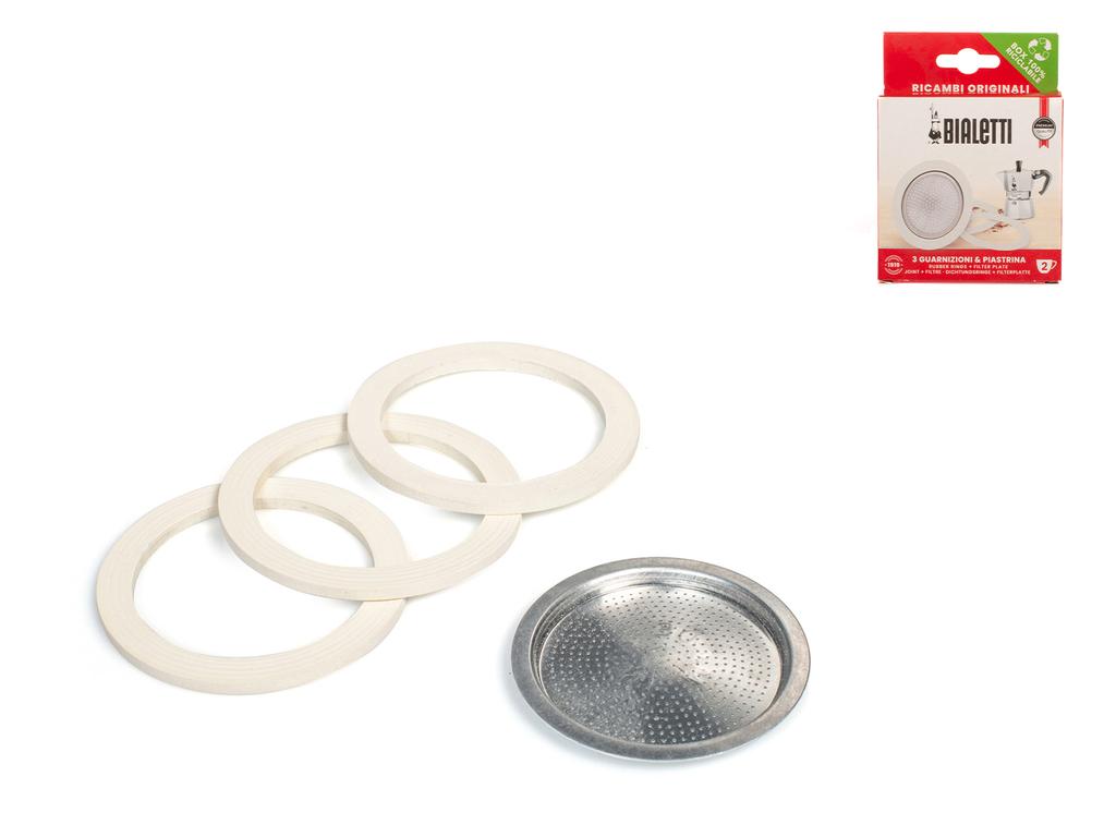 Mantieni la tua moka da 2 tazze in perfette condizioni con questo set di guarnizioni e filtro, essenziale per una preparazione di qualità. LINEA RICAMBI BIALETTI,RICAMBI BIALETTI,Bialetti
