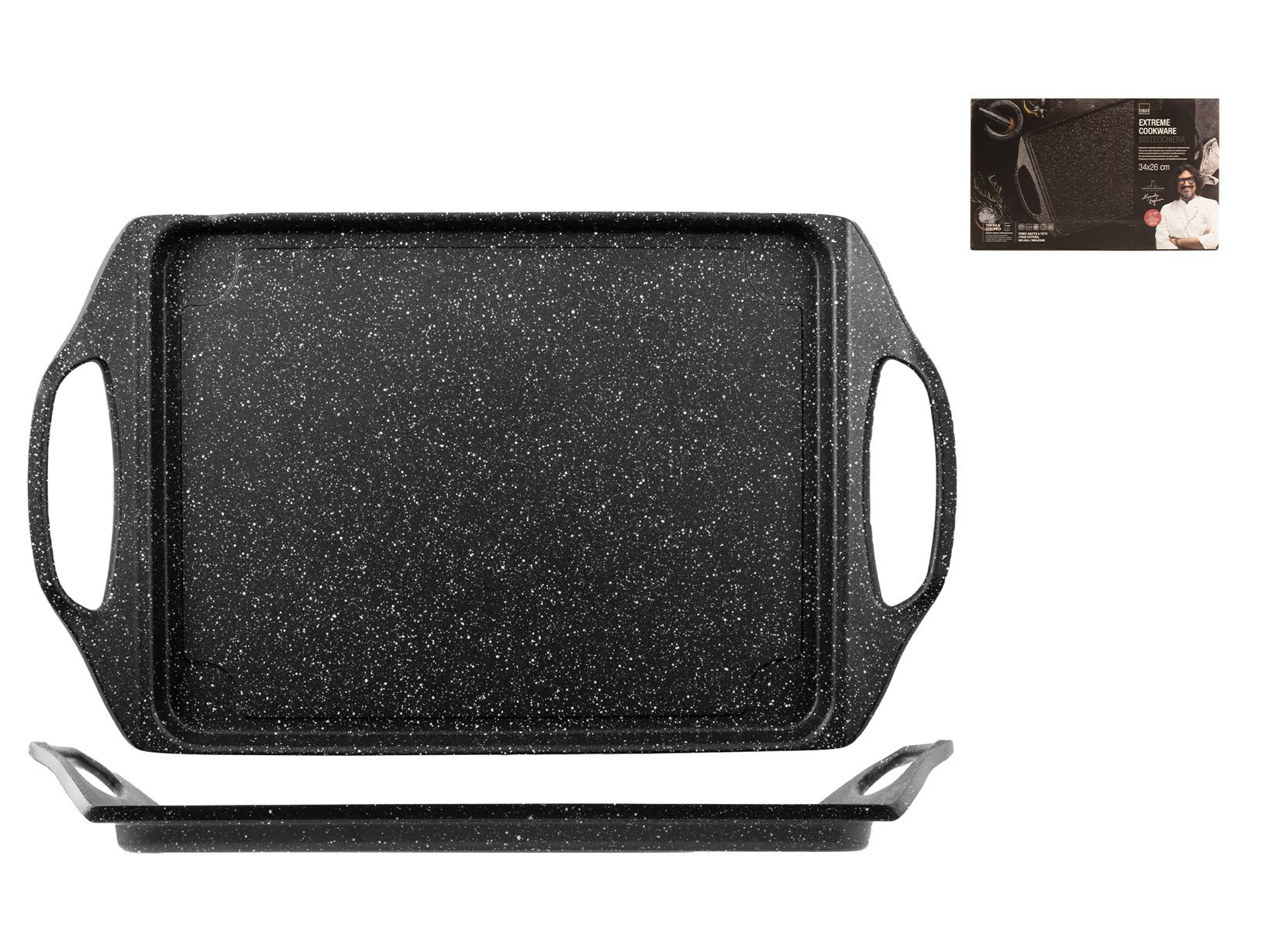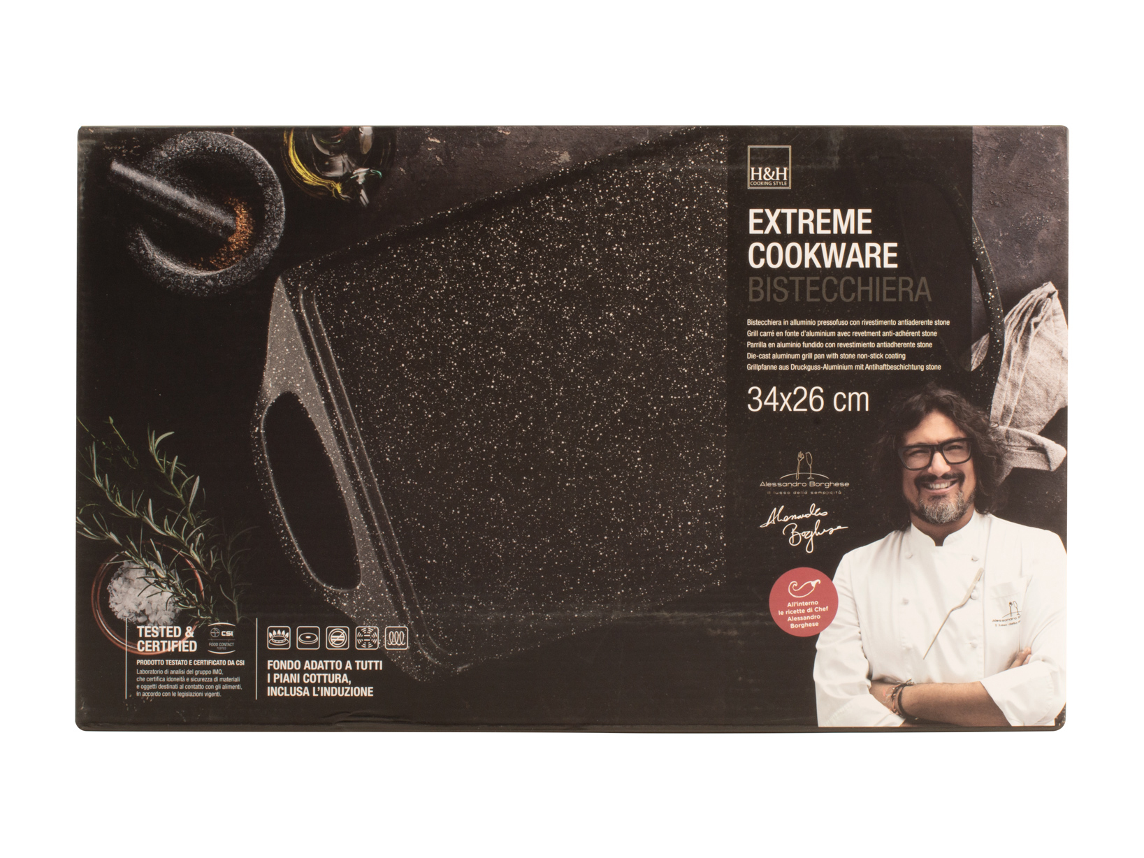 Piastra in alluminio pressofuso con rivestimento antiaderente stone cm 34x26 Alessandro Borghese " il lusso della semplicità ". Fondo adatto a tutti i piani cottura inclusi vetroceramica e induzione. LINEA BORGHESE COTTURE,OUTLET,SCONTO40,H&H,heh