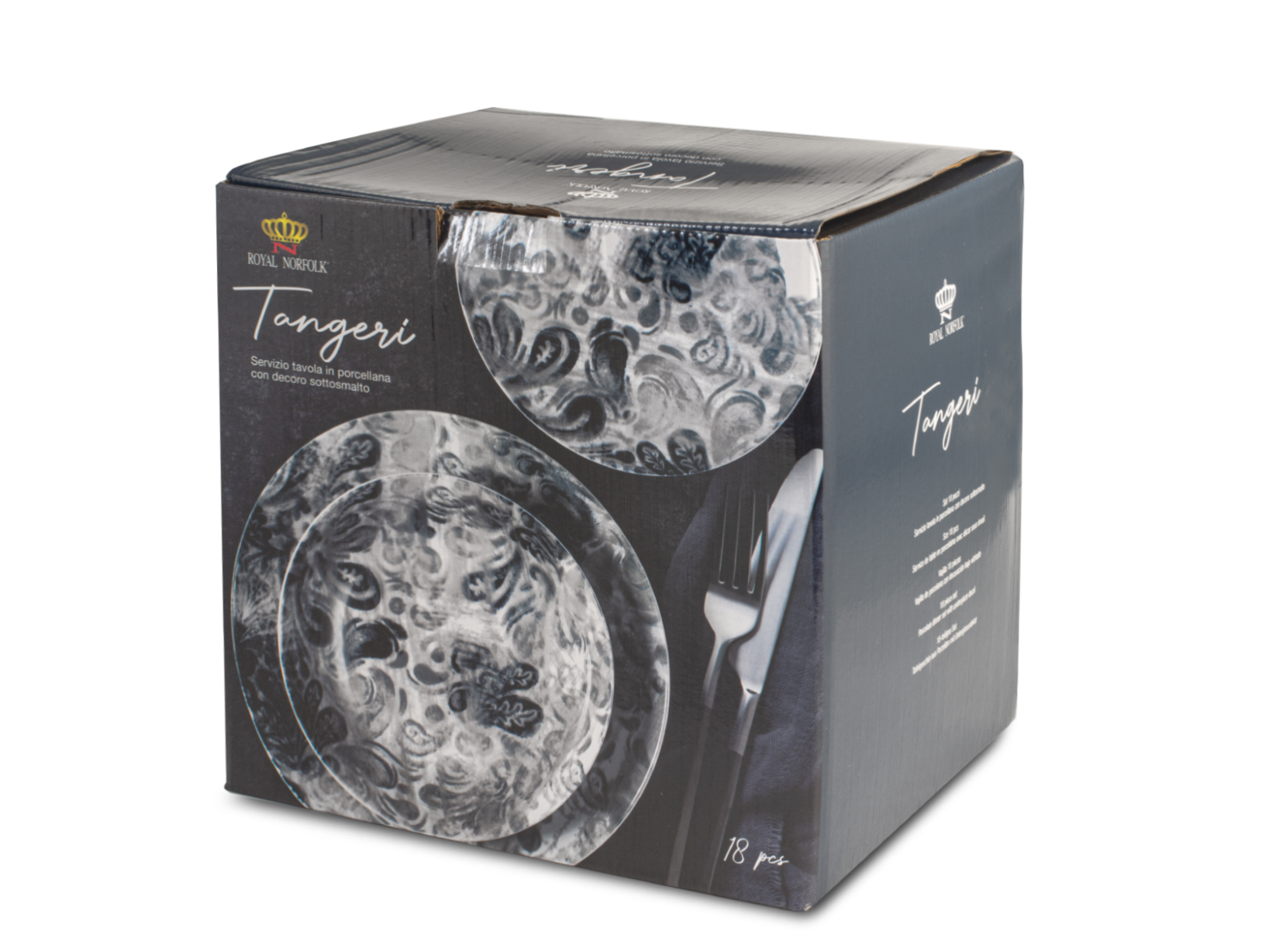 Rendi ogni pasto un evento speciale con il Servizio Tavola Tangeri da 18 pezzi di Royal Norfolk. Realizzato in pregiata porcellana decorata e caratterizzato da una sofisticata forma coupe, questo set unisce eleganza e funzionalità. Il servizio comprende sei piatti piani da 27 cm, sei piatti fondi da 20 cm e sei piatti da frutta da 20,5 cm, offrendo una soluzione completa e raffinata per ogni occasione. LINEA TANGERI PCL,TANGERI PCL,Autunno