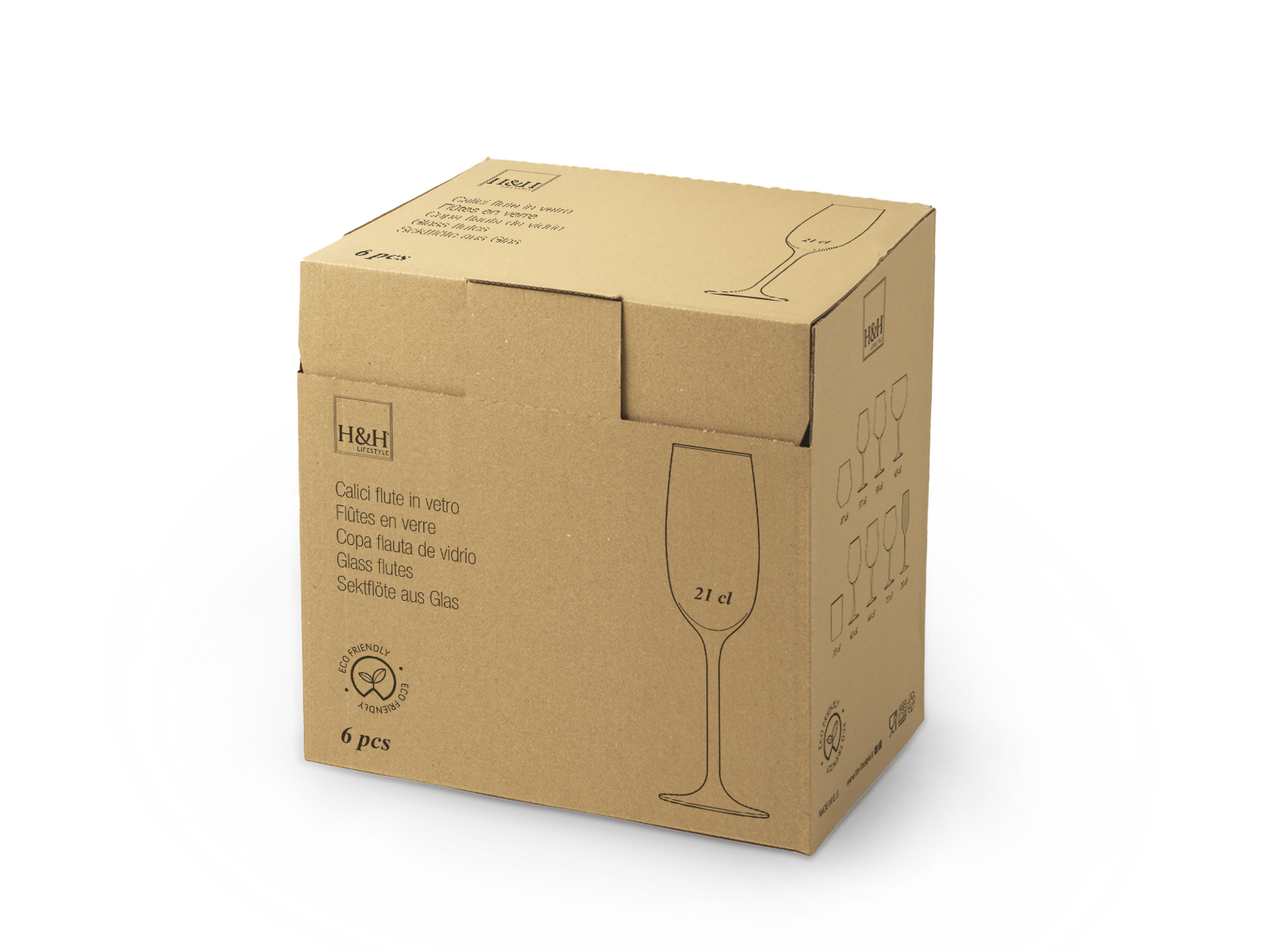 Set composto da 6 Flute XXL in vetro trasparente da cl 21, perfetti per aggiungere un tocco di eleganza alle tue occasioni speciali. Con il loro design raffinato e la capacità generosa, sono ideali per servire champagne, spumante e altri drink raffinati. Realizzati in vetro di alta qualità, sono completamente idonei al lavaggio in lavastoviglie, garantendo praticità e facilità di manutenzione senza compromettere lo stile. LINEA XXL,H&H,heh