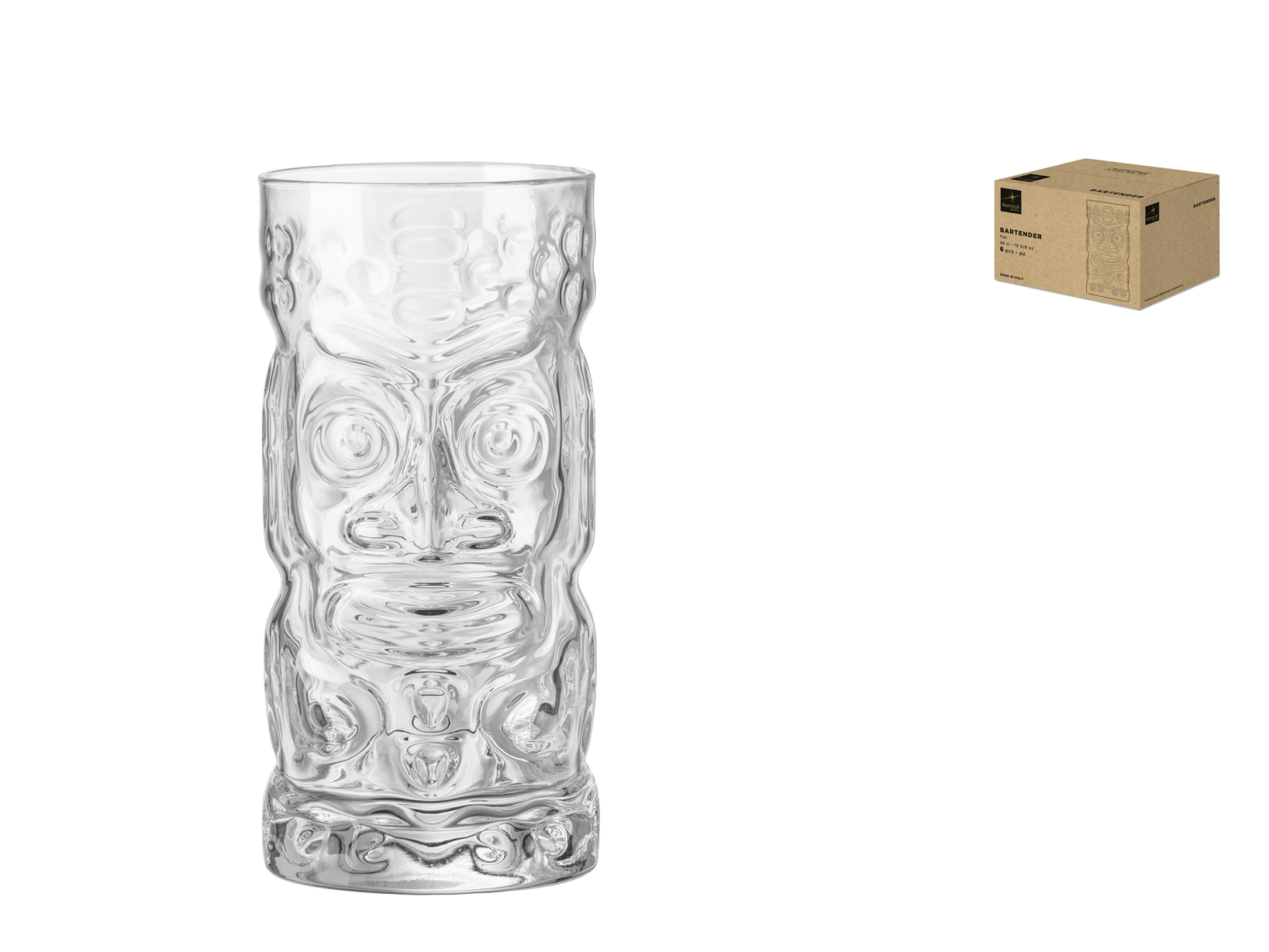 Set 6 bicchieri Bartender Tiki in vetro trasparente lavorato da cl 58, ideale per gli amanti dei cocktail e delle bevande esotiche. Con un design unico, questi bicchieri in vetro trasparente sono perfetti per servire drink dal look originale. Realizzati in vetro di alta qualità, sono idonei al lavaggio in lavastoviglie, assicurando una facile pulizia e una lunga durata. LINEA BARTENDER VTR
