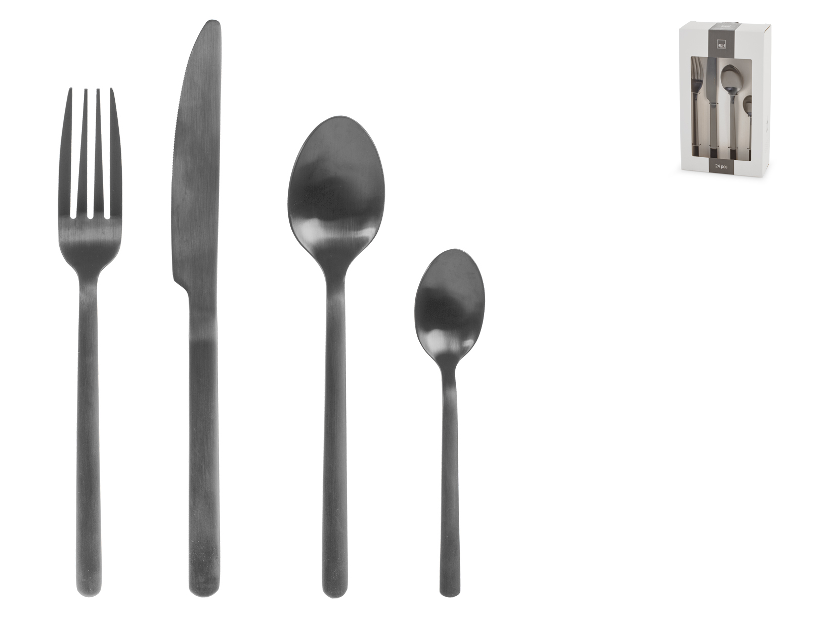 Il servizio 24 posate Pulse in acciaio inox nero opaco è la scelta ideale per chi cerca un look raffinato e contemporaneo per la tavola. Il set include 6 cucchiai, 6 forchette, 6 coltelli e 6 cucchiaini da caffè, perfetti per ogni occasione. La finitura nero opaco dona personalità ed eleganza, mentre l’acciaio inox assicura robustezza e durata nel tempo. Per mantenere l’aspetto originale, si consiglia il lavaggio a mano o in lavastoviglie con cicli brevi e delicati (max 40°C). LINEA H&H POSATE,Natale,tavola-di-Natale